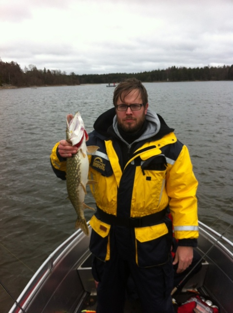 Idag är det betydligt bättre väder, vinden har vänt. Stefan började med en fin havsöring på 2,5kg prick. Jag brassade på med två gädda i snabb följd med top på klena 2,77kg. Högg på treledad Sebile och Minnow Spoon 32gr från Rapala. Nu är det välbehövlig paus i Öregrund city och pizzor på Briggen.