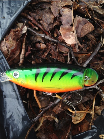 Denna wobbler har jag endast i den färg som ni ser på bilderna. En rätt klassisk färg, Firetiger eller FT förkortat. Mitt bete är rätt slitet, men likväl ser det helt ok ut. Nya är de skimrande och fina.