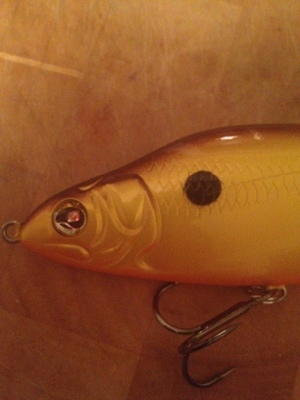 Jag tror att Johan lärde sig samma sak gällande spraylacken, hans ena sida på betet lossnade, själva reflextejpens klister tyckte inte alls om vatten. MEN, det vi också lärde oss var att Johans jerkbaitbete hade en sjuhälsikes gång!!