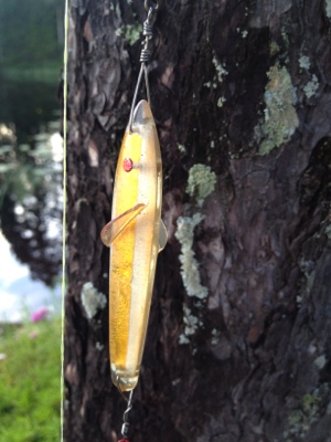 Jag begav mig till familjens sommarstuga och njöt lugnets underbara gång. Stannade till på en loppis och köpte ett skoj fynd för en 25:-. Funderar på att svänga förbi och köpa några fler. Propellrarna ger betet inte helt otippat en snurrande gång. Kan vara något Arjonbete?