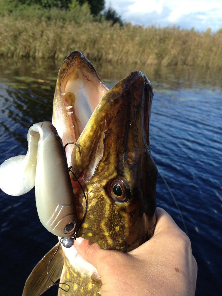 Verkar vara ngt speciellt med vädret, gäddorna hugger inte speciellt hårt alls. Så det var till att vara på alerten. Hade säkert 15gäddor vid båten som bara hängde på betet och kollade läget. Inte speciellt rädda för båten, utan kändes som gäddorna var på sightseeing.