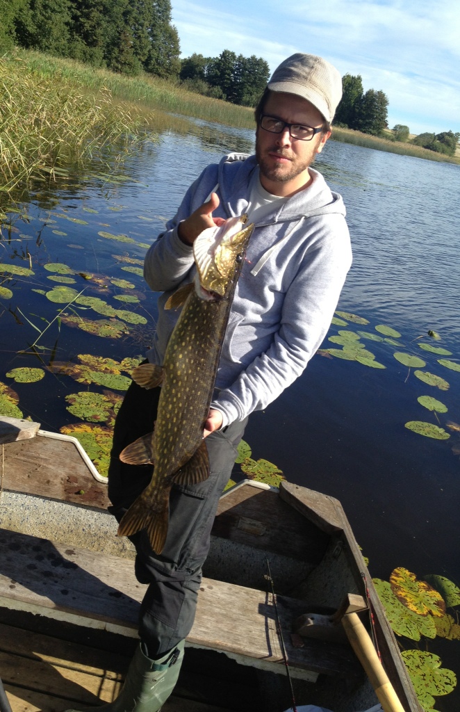 Tomas fick posera med en av mina gäddor. Jag tycker han gör det bra.