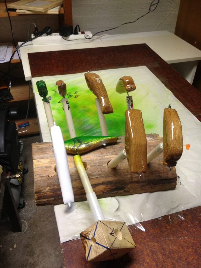 Rätt beigt med lackning, det tar sin tid, ett halvt dygn mer eller mindre. Har man då gjort allt man kan komma på är det rätt segt. Jag ritar färgsättningar, och ringer Micke (CaesarLures) och ställer en massa frågor om allt mellan himmel och jord. Sen snackar vi endel skit också. 😀