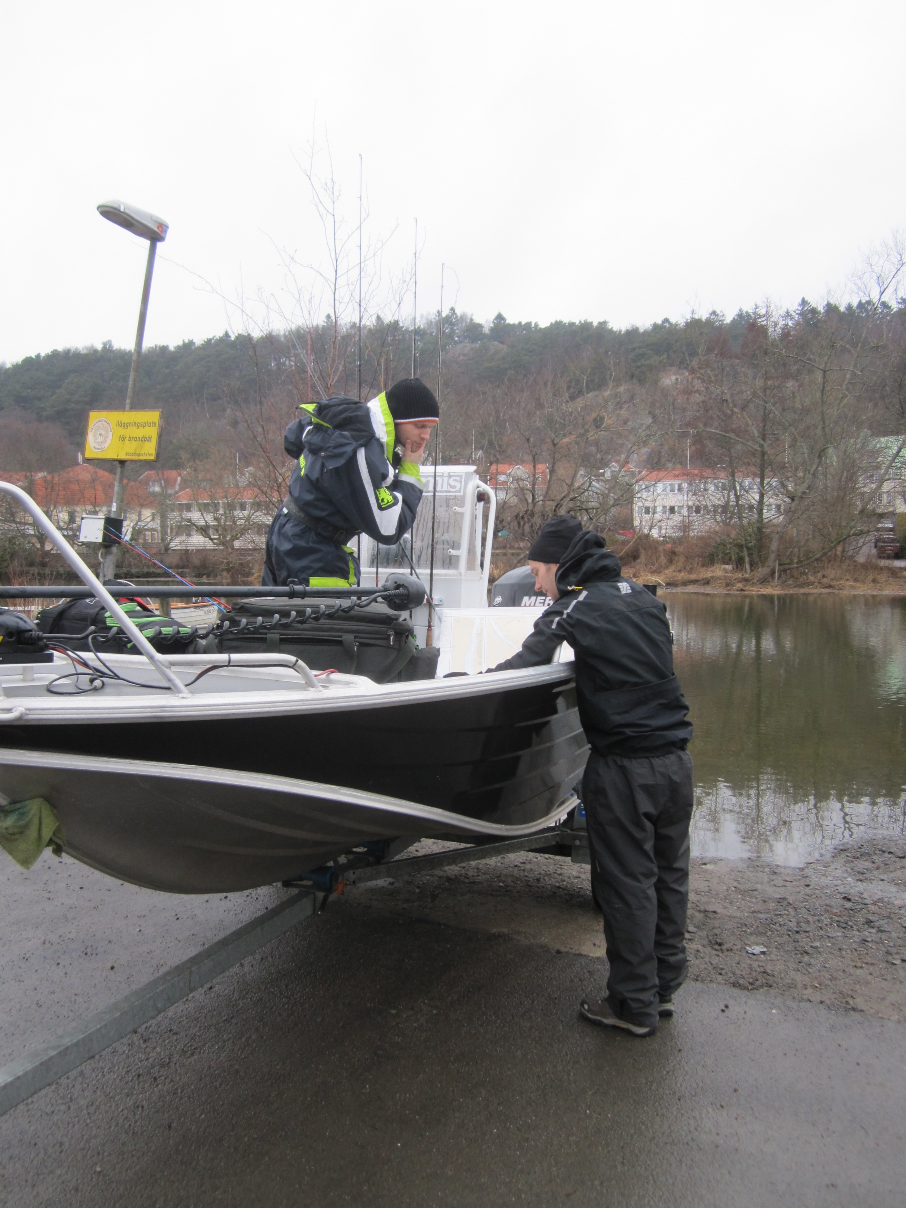 När all packning var i bilen så var det precis så tre vuxna människor fick plats. Två dagars fiske och tre personer, men sååå jäkla mycket packning. Haha, helt galet. Båten på trailern, tutade några gånger och sen bar det av i 190 mot Götet. Eller det var jag som körde ekipaget, så det blev inga 190, jag har ju fortfarande prövotid på körkortet så 80km/h på cruisecontrollen. Tyckte mig höra endel “men är vi inte framme snart”-gnäll och “vad sakta vi åker”, men de rösterna tystnade rätt snabbt när jag erbjöd dem att köra. Nog om resan, den tog aplång tid iaf.