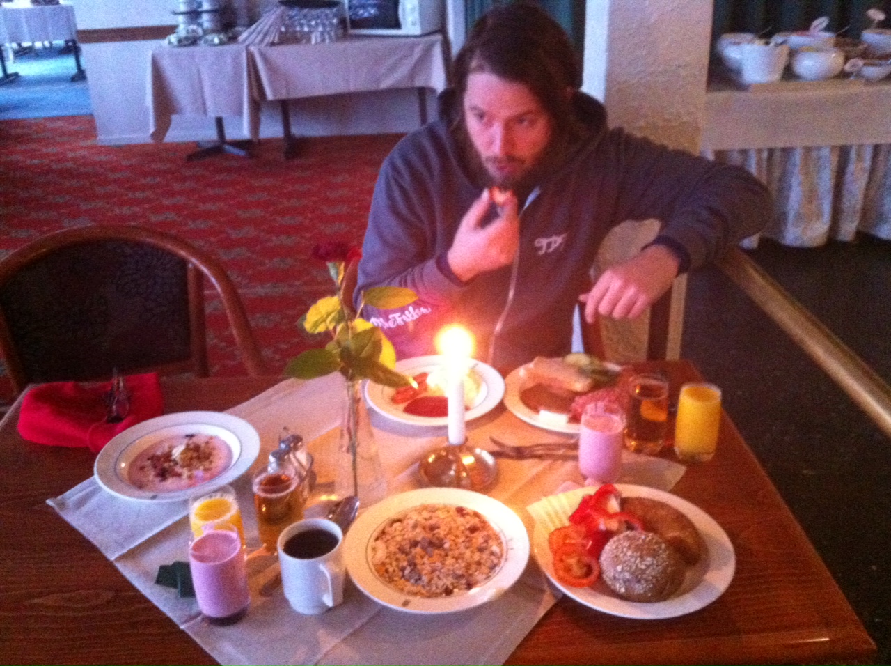Väl framme vid 01:45 i Kungälv som var slutmålet så slängde vi av Amber på hans vandrarhem där han hade valt att bo, och jag och Micke drog till hotellet och började kitta lite bland främst jig, och tafs och sånt. Sen blev det hoppisäng, ocg skitsnack fram till en bra bit efter fyra. Klockan ringde innan 07, upp snabbt och hoppa i kläderna och en ack så trevlig hotelfrukost.