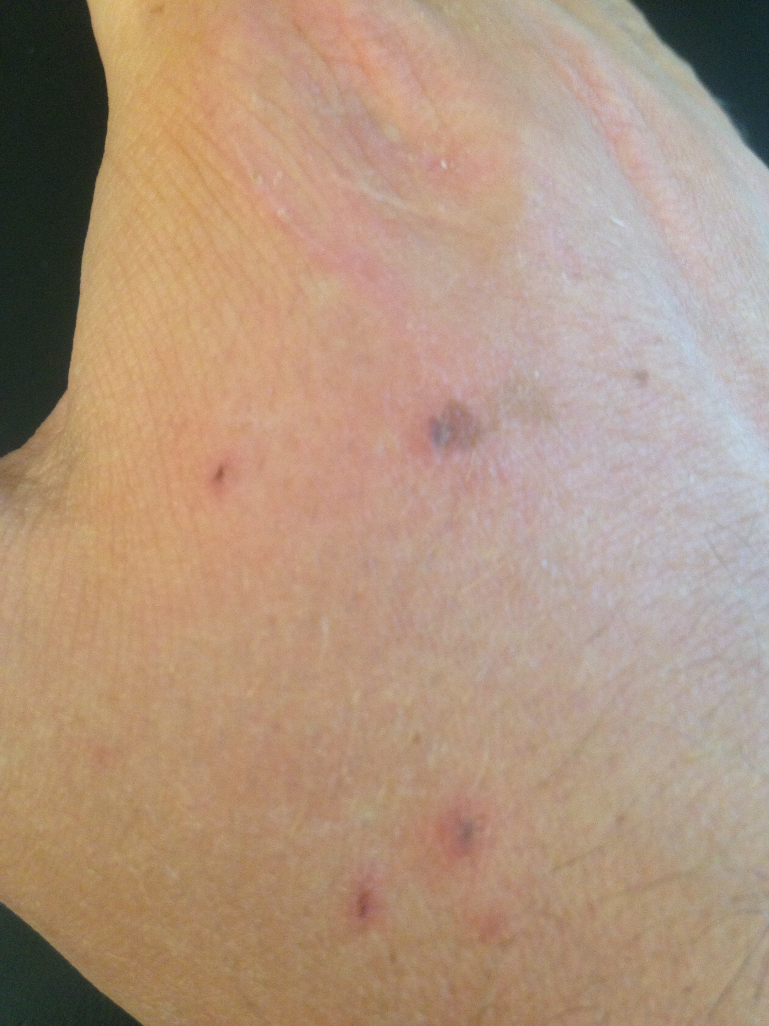 Det låg regn i luften, och rätt vindstilla. Myggen var på en direkt såfort vi klev ur bilen, och samma sak på sjön. Micke var mer korrekt klädd med kläder som täckte honom. Jag körde jeans och collagetröja och myggjävlarna åt sönder mig.