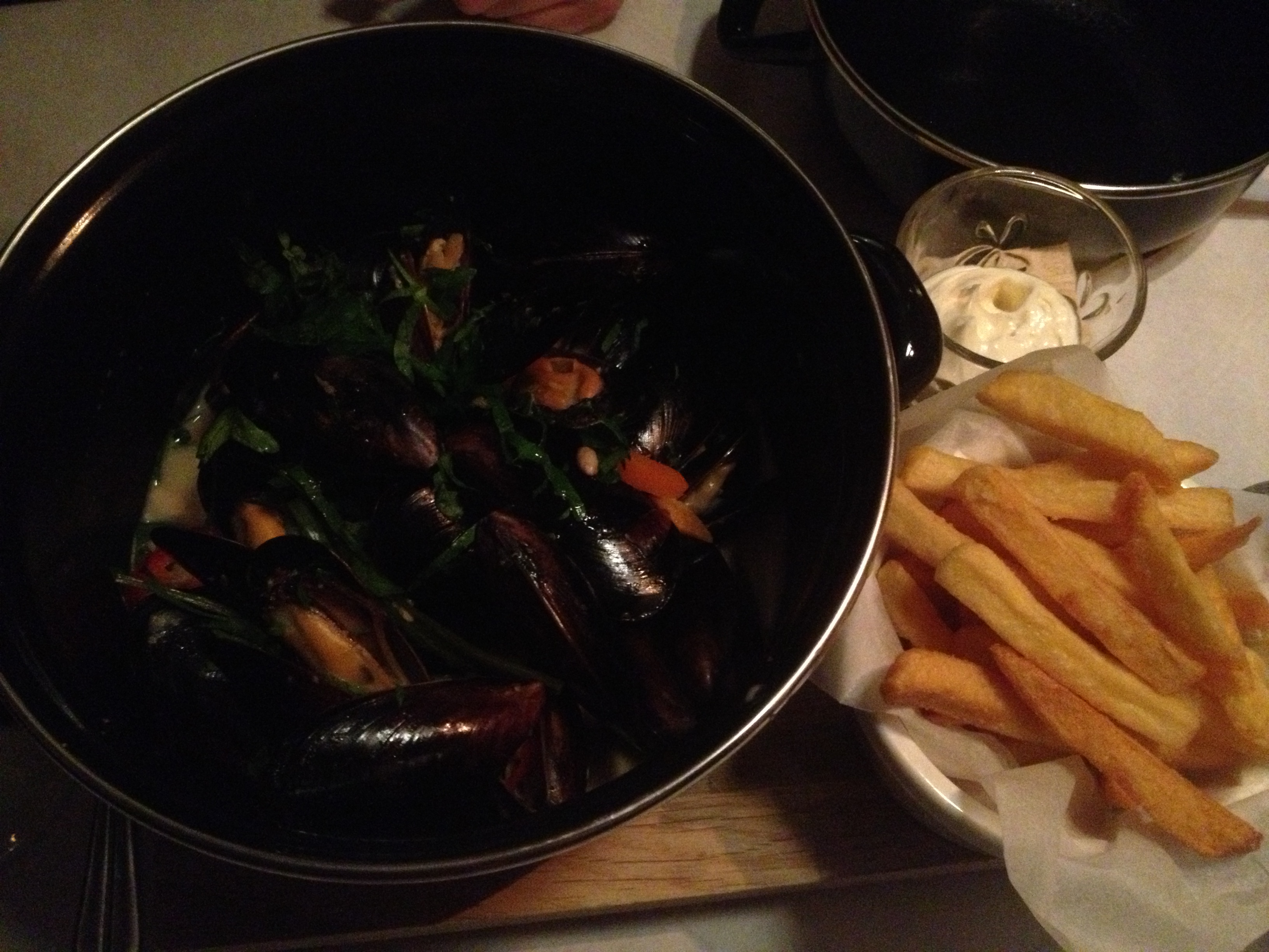Musslor till förrätt, Moules marinière eller Moule frittes om man vill så.