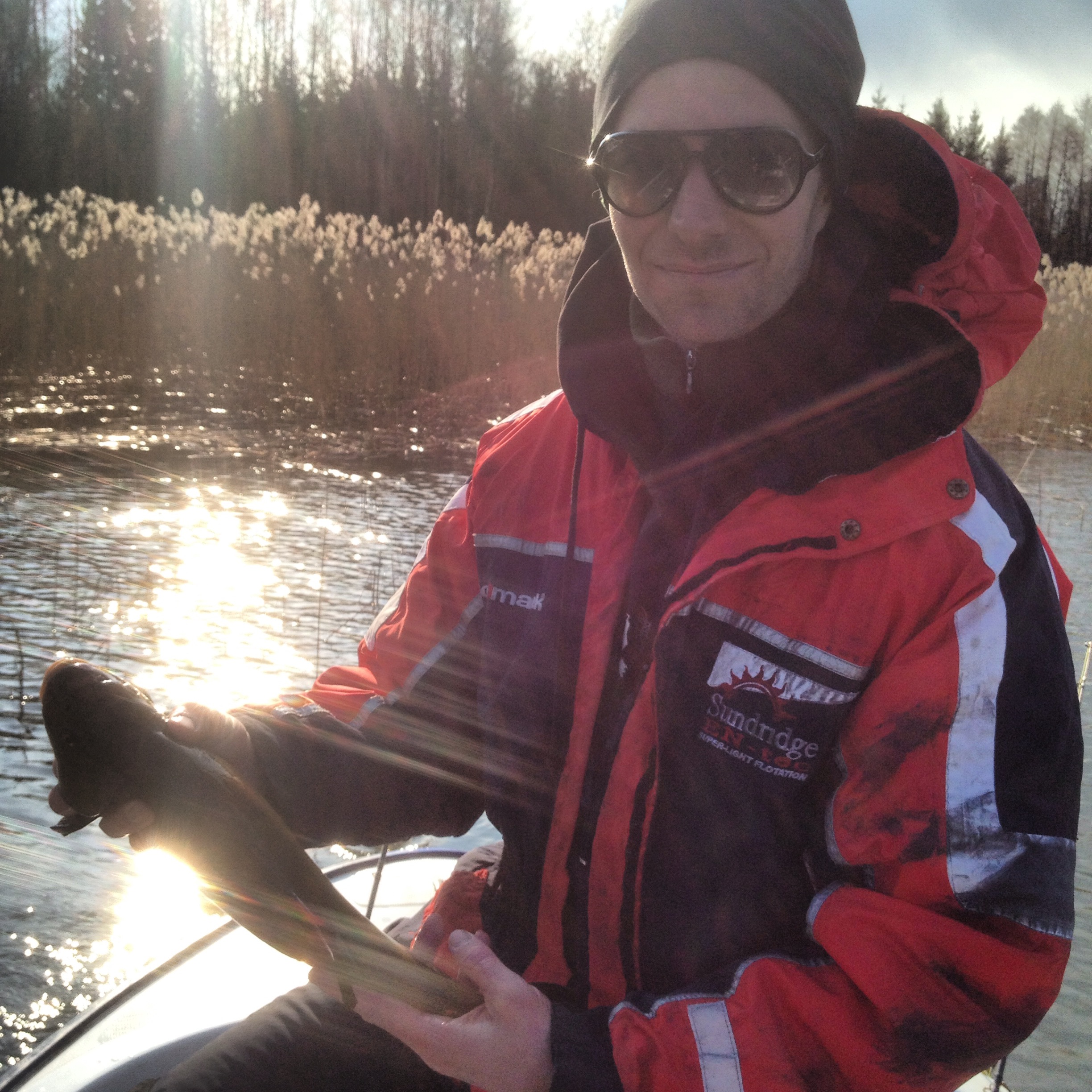 Väl ute på ån, solsken och istortsett stiltje. Ingen höjdare kanske gäddfiskemässigt. Men vi körde på för fullt. Många ställen som såg heta ut, och med Rogers kunskap så kan jag faktiskt utgå ifrån att det var just heta fiskeställen.