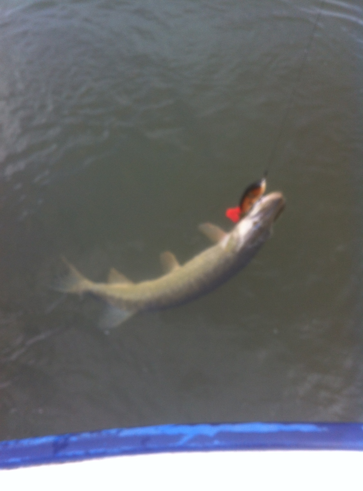 Min första fisk för dagen. På mitt egna gummi.