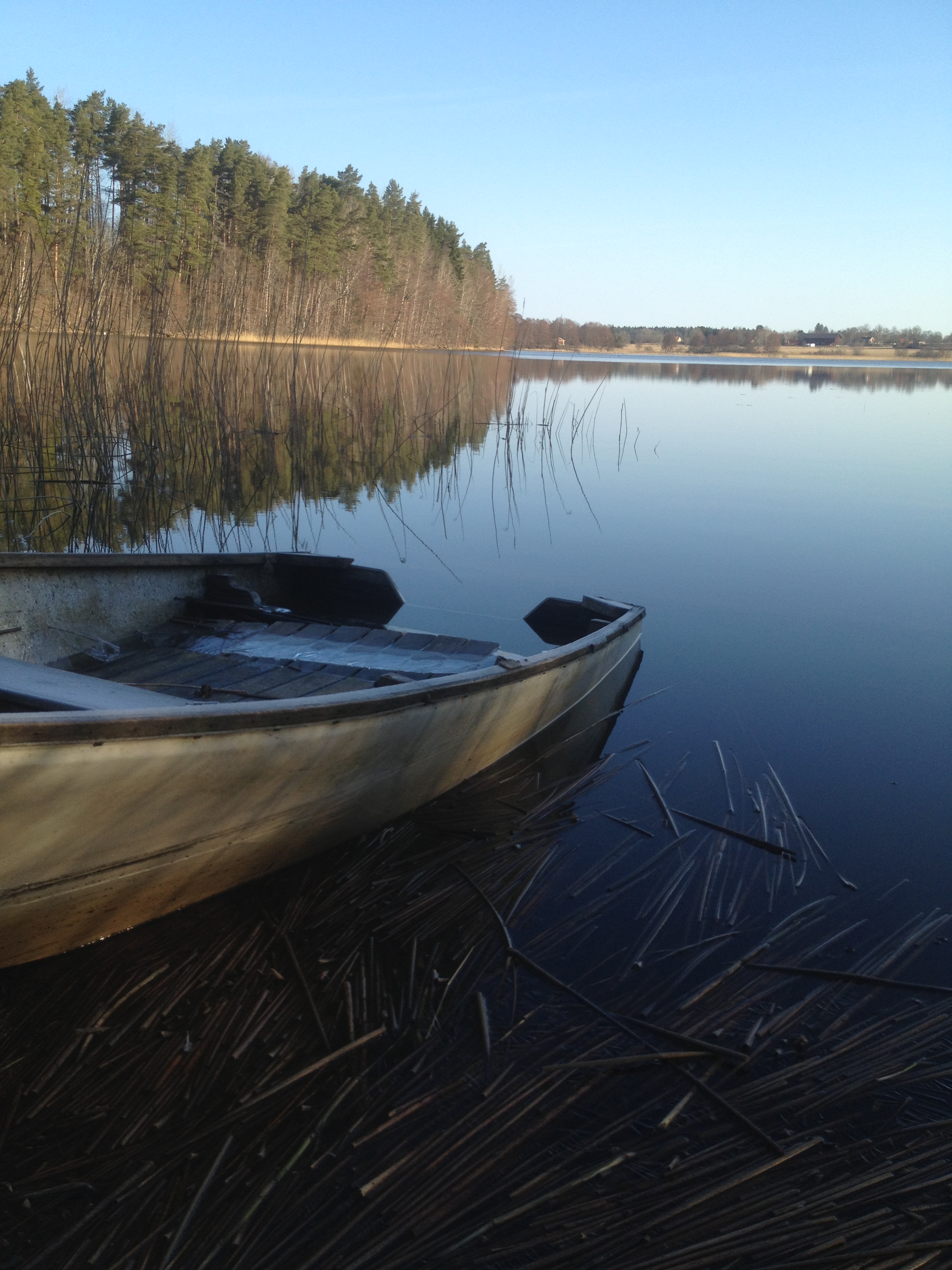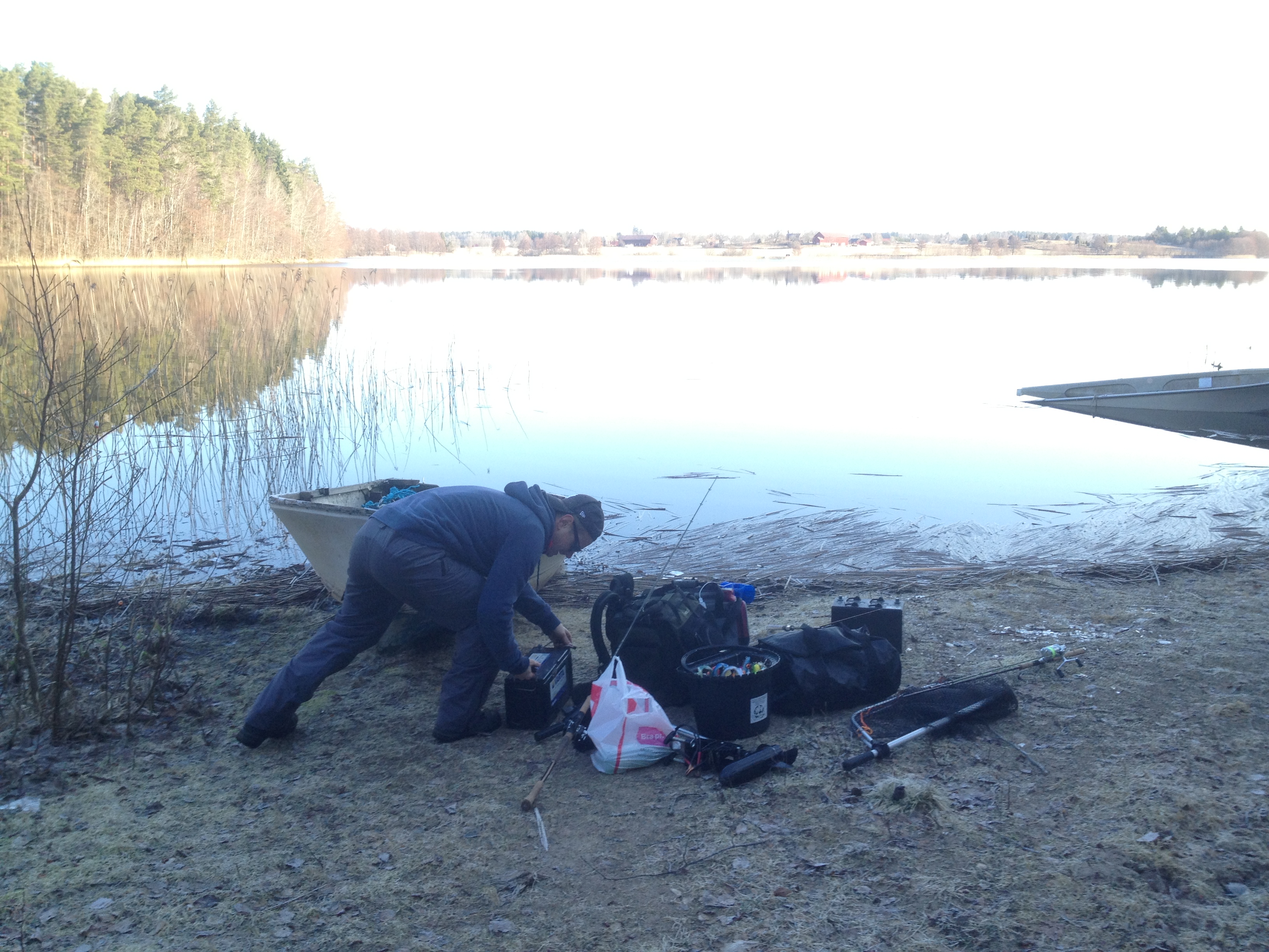 Morgonen började bra, min båt som jag hade glömt ta upp för vintern var bara uppdragen som om jag skulle komma tillbaka och fiska dagen efter. Isen var istortsett borta, en sjöns vattennivå hade höjts avsevärt så min båt hade blivit ett med sjön. 🙂