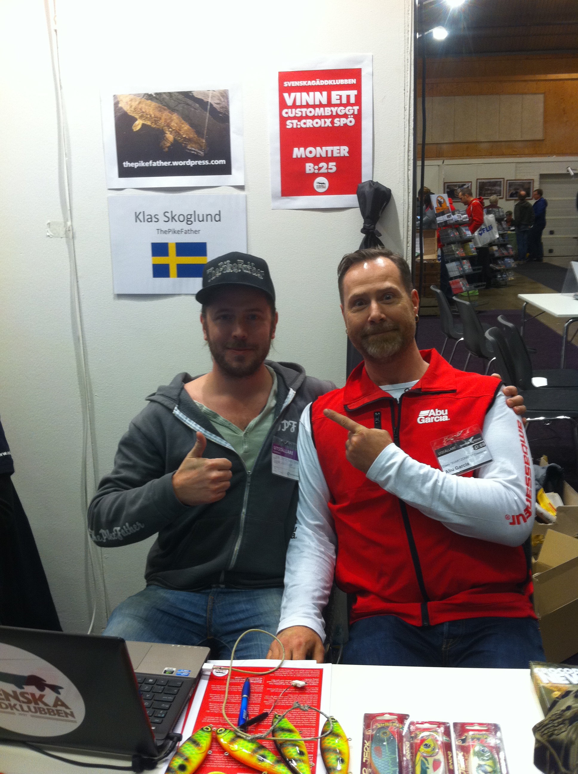Joel “GäddJoel” Abrahamsson var på plats och kom förbi för en liten pratstund. Jag fick testa på Joels spö han drog världsrekordfisken på. Sjukt tungt spö, och när Joel belastade spötoppen så jag fick känna på hur tungt det känns med Håkärring på kroken förstod jag vilken bedrift denna mannen genomfört.