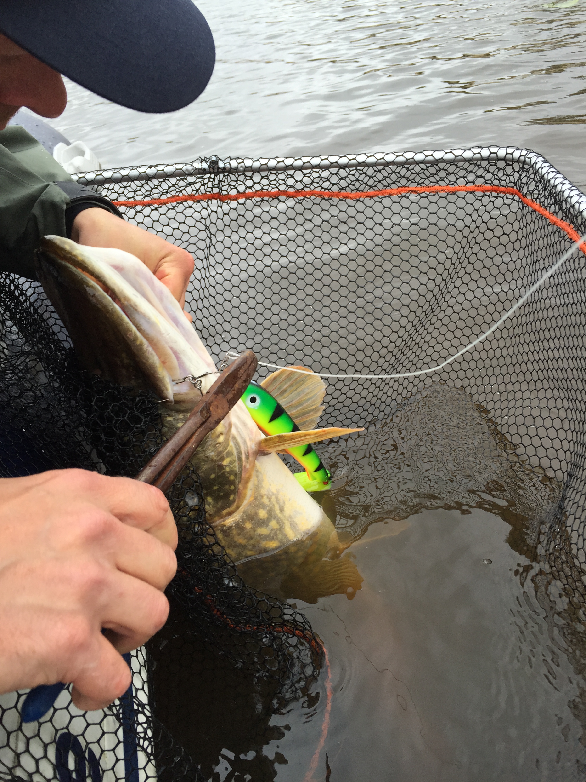 Doktor Mickleson fixar garnityren på gäddan. Aningens tandsten, men annars finfint!