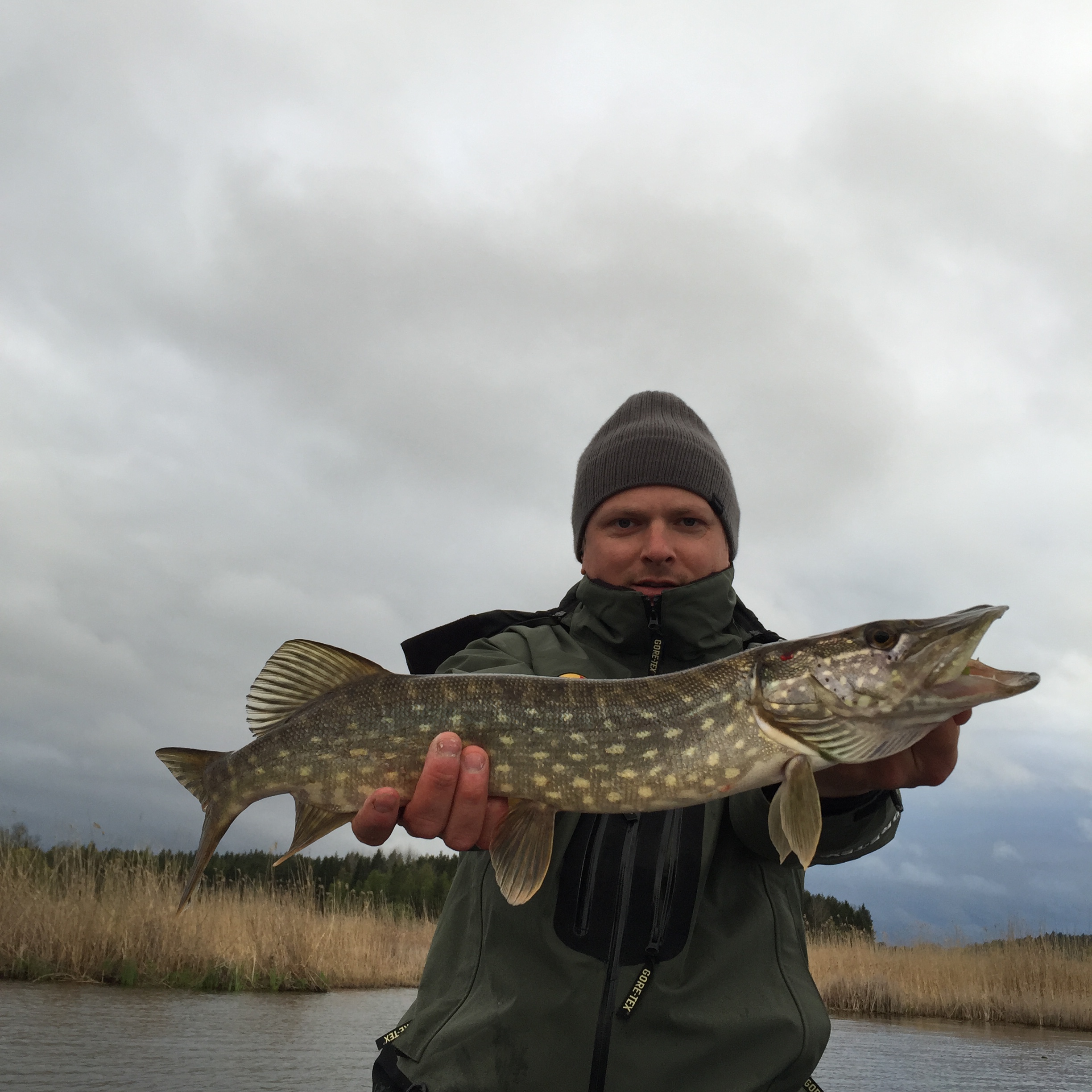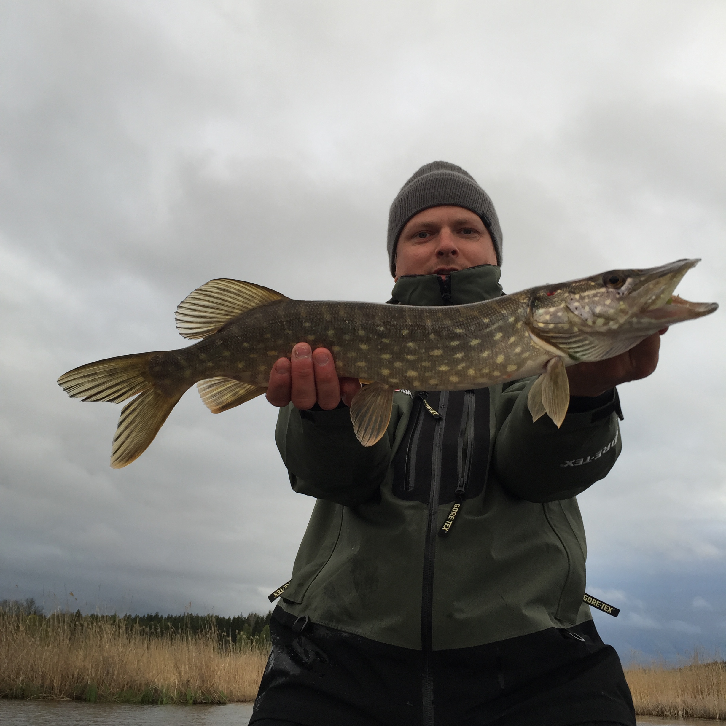 Just ja, höll nästan på att glömma. Rogart avslutade starkt med en pyttisgädda. Vi skämtade om att man ofta ser sinnessjukt frontade gäddor. Så vi gjorde ett litet försök till frontning bigtime med en liten gädda. Blev sådär, men skoj hade vi. 🙂