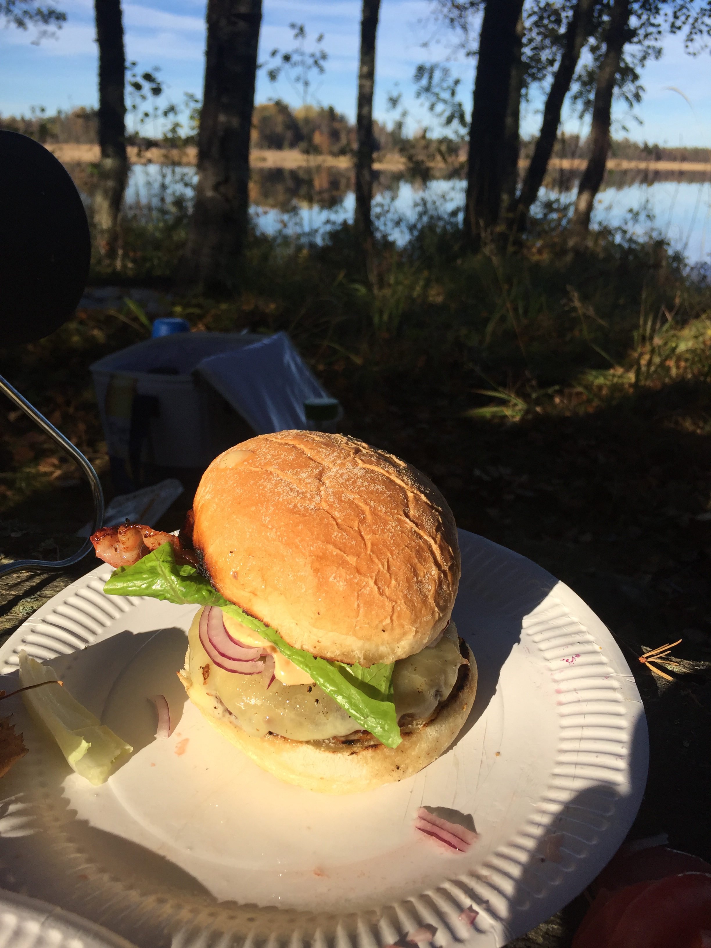 Höjdpunkten för dagen var hamburgergrillningen, vi klev iland och grillade med Rogerts Primusgrill. Enkel, snabbt varm och grillar finfint! Riktigt kalasgoda burgare!