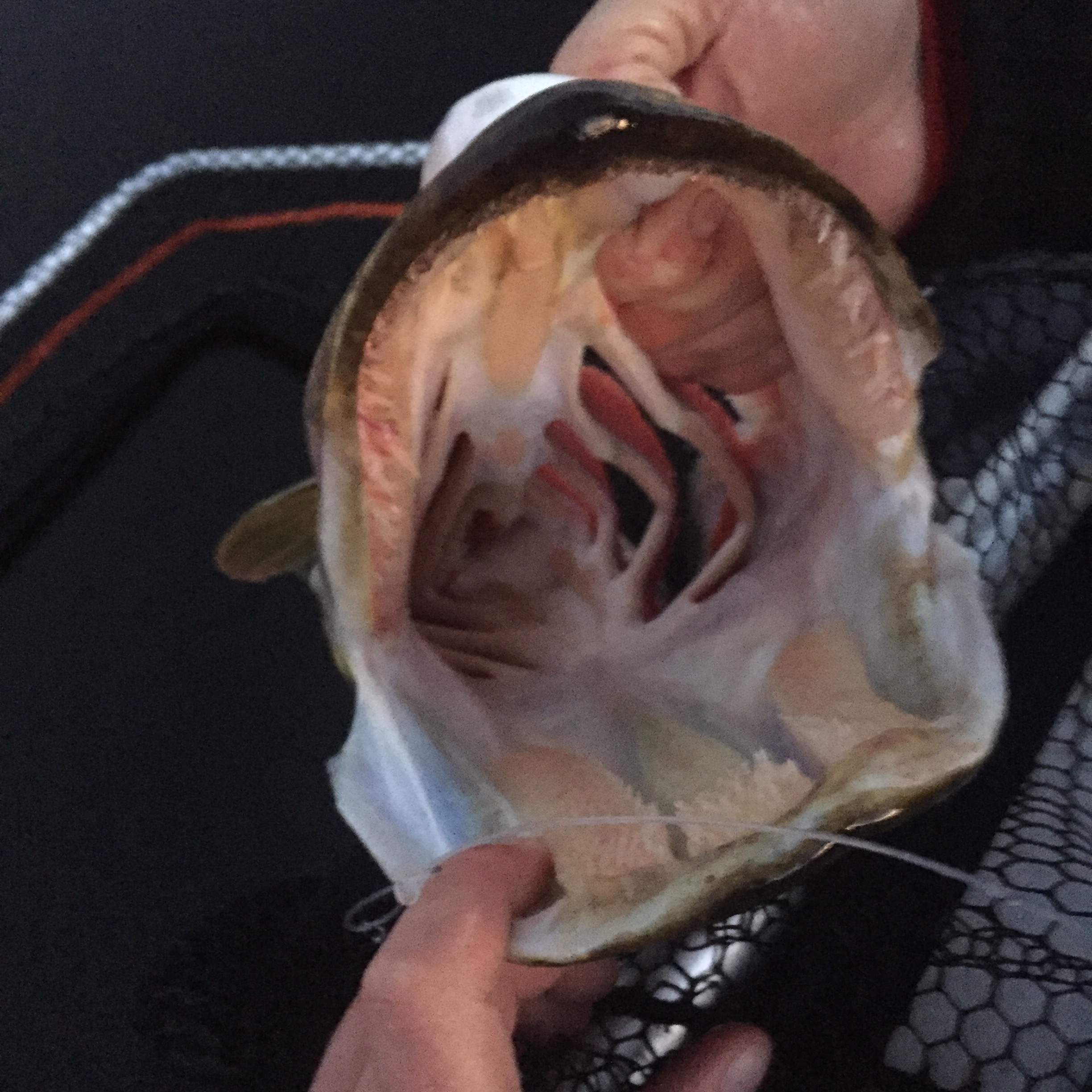 Rogart slänger iväg en Wingman i färgen Golden Shiner från Eastfield, smacka. Rogert ropar fisk. Jag ser på spöt att här har vi en bättre fisk. Släpper mitt spö, greppar hov och ropar till Rogert, håv på vänster sida båten. Rogert möter upp med spö och fisk. Tadaahh!!