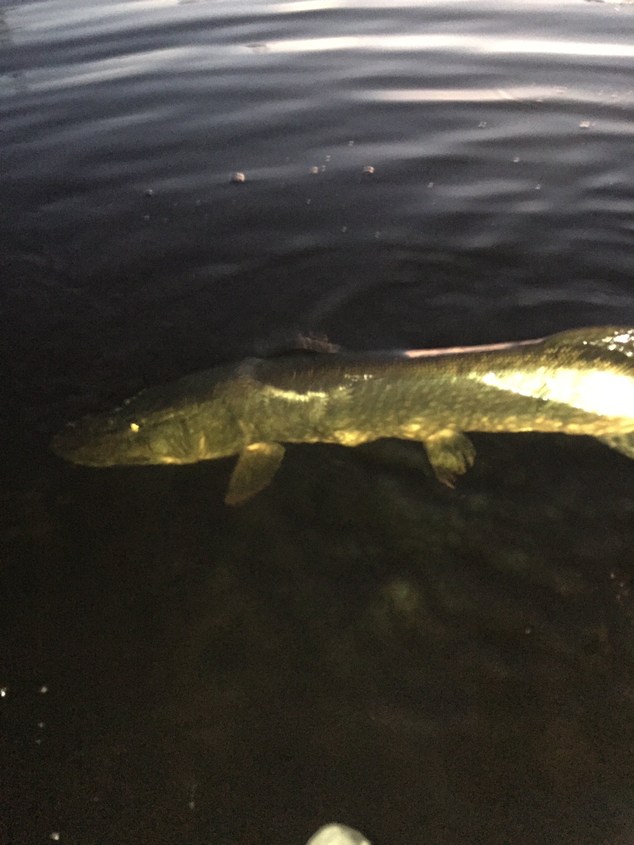 C&R, gäddan simmade in bland näckrosorna när den fått hälsa på oss. Den var säkert full av nya intryck efter att ha fått träffa två nya kompisar i mig och Rogert. 🙂
