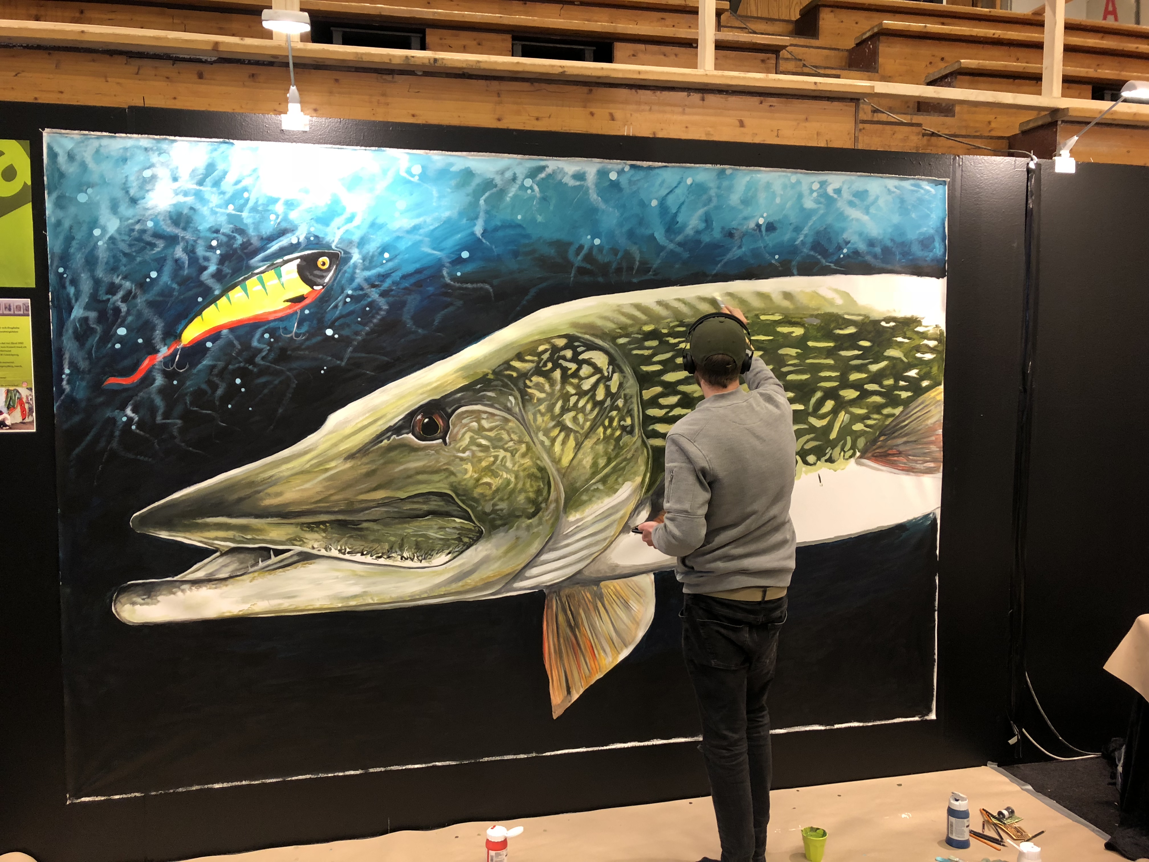 David Hed målade på plats. Sjukt skicklig kille och motivet är 10 av 10 gäddor möjliga i betyg.