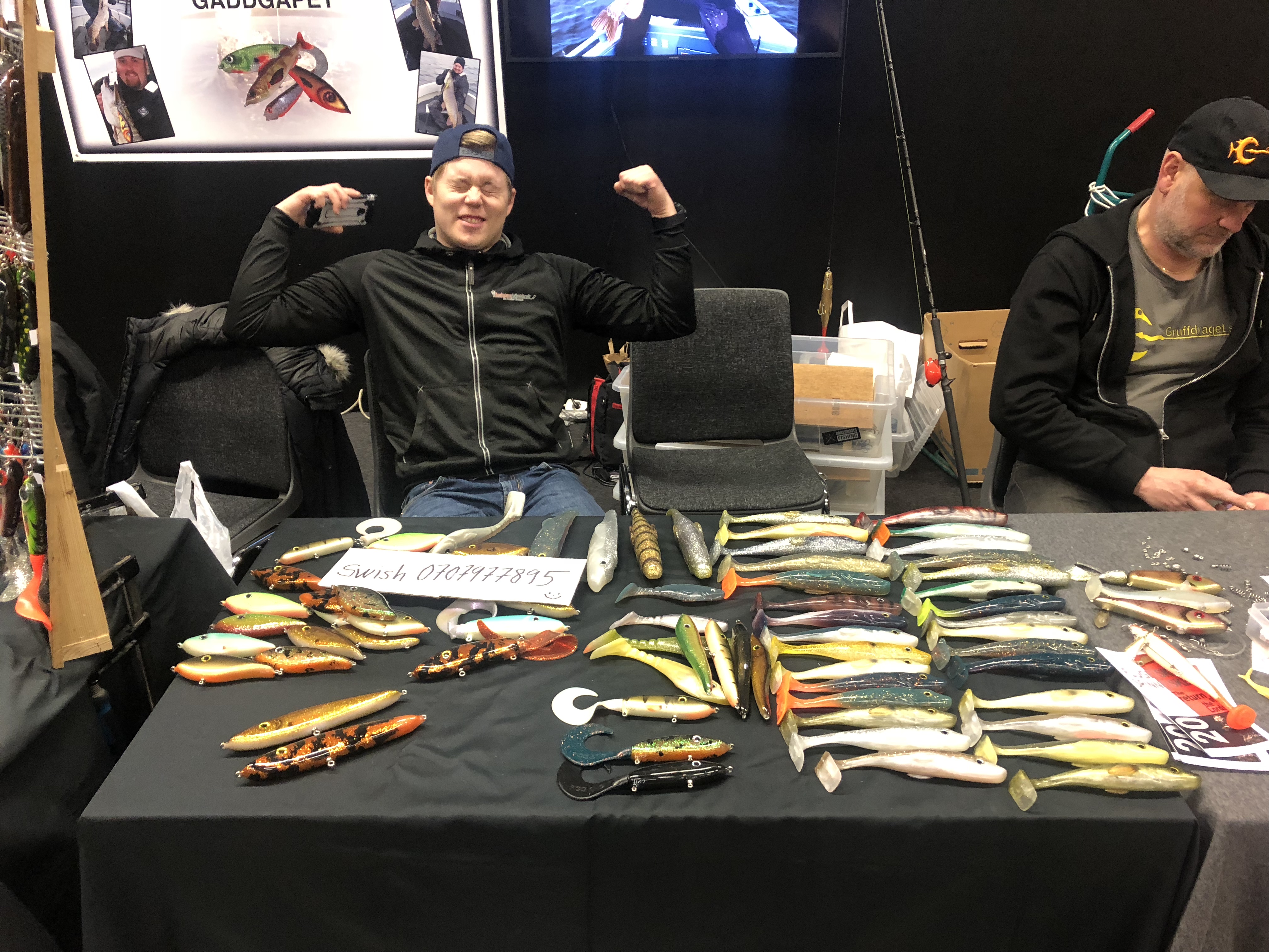 Anders Perols och nämnda Gäddsällskap som fixade kaffe hela mässan och bjöd på många skratt. Det uppskattas! Sen var FiskeFürAlle där också, även om de inte var där, så var de där. Som besökare fast ändå som utställare, aningens oklart, men jag uppskattade det iaf.