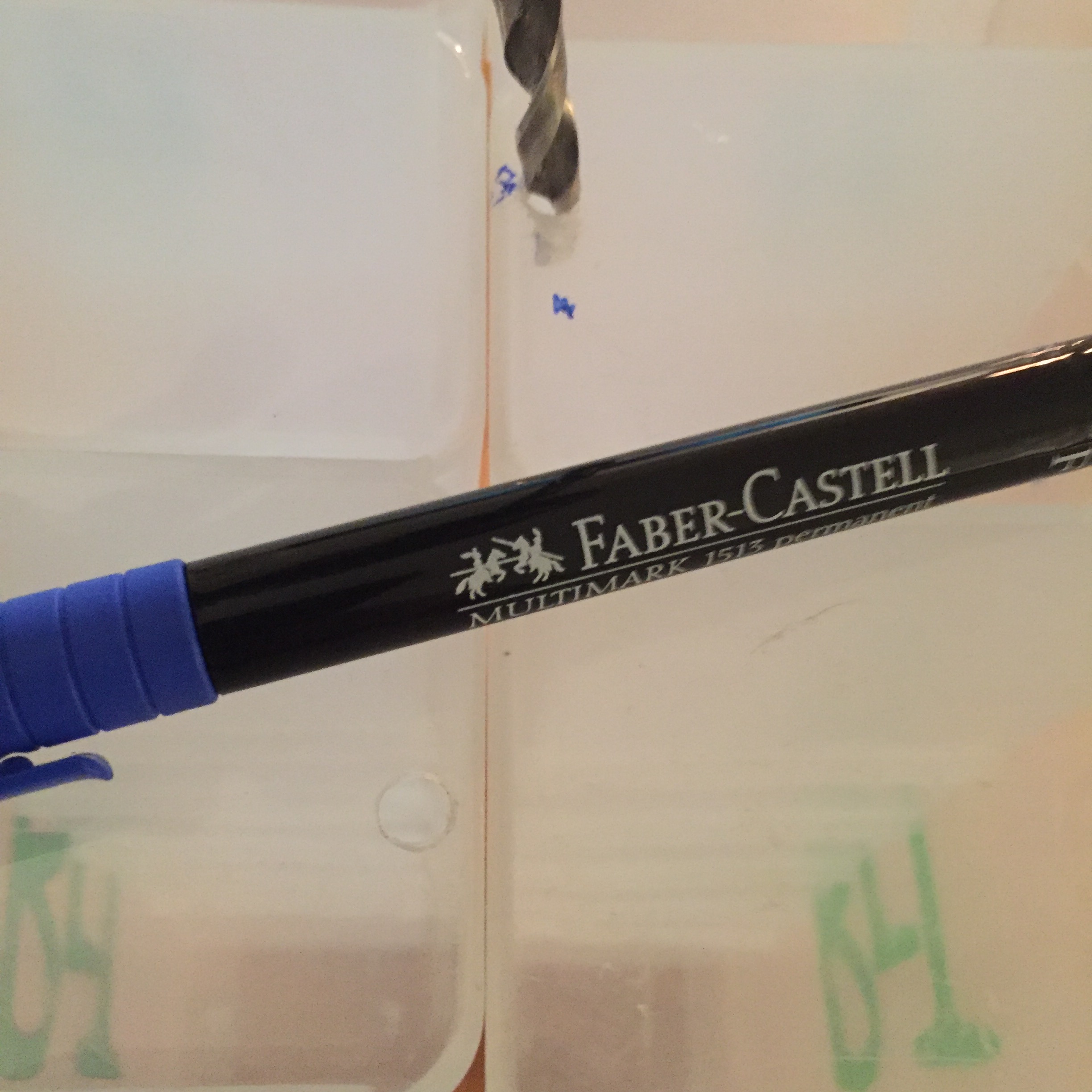 Spritpenna kan vara bra för att markera var man ska borra. Som ni ser målade jag på flera ställen. Men det hjälper med pennan, så det är ett bra tips så man får det så bra som möjligt med borrhålen.