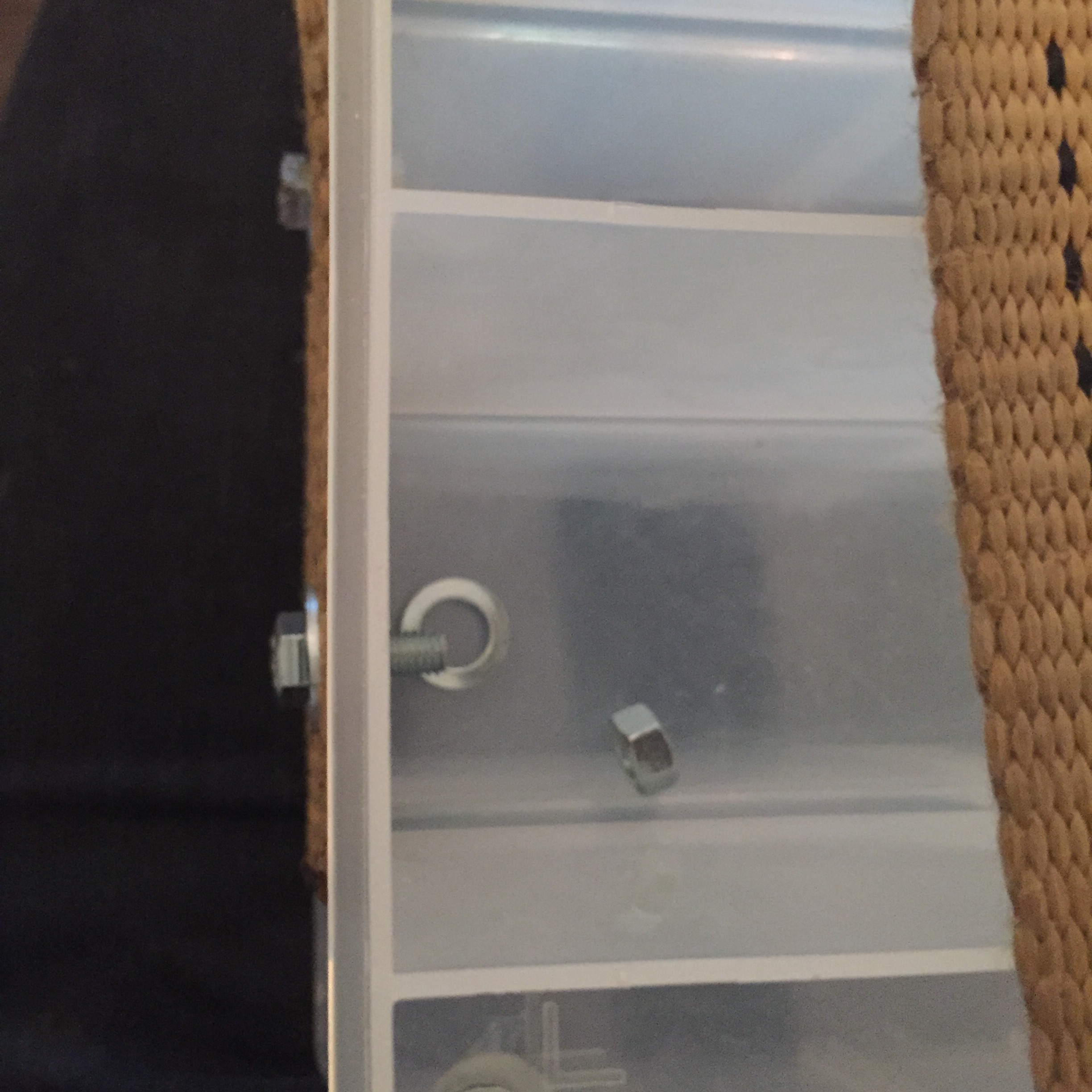 Sen sätter du dem med bottnarna mot varandra och borrar rakt igenom insidan på den ena Planolådan på valfria 4 ställen på plano, eftersom de sitter ihop så blir det att du borrar igenom den ena till den andra lådan. Jag borrade på insidan av kortsidorna.
