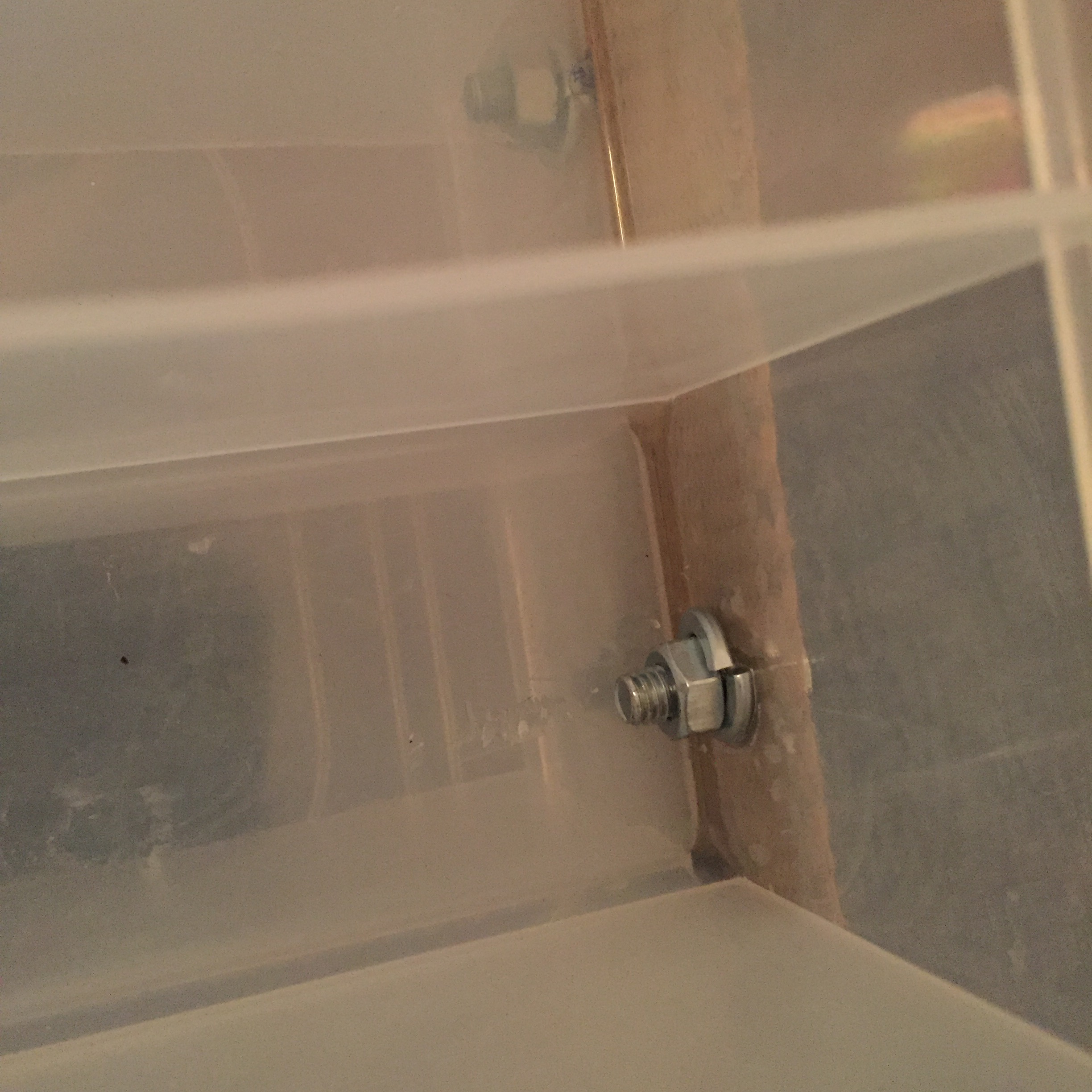 Jag började med att sätta ihop Planolådorna. Är inte svårare än det ser ut. Jag satte i skruv och med handkraft skruvade in muttrarna. Därefter, en i taget hällde jag något droppe superlim och drog åt mutter och skruv. Alltså upprepa samma förfarande på alla fyra ställen.