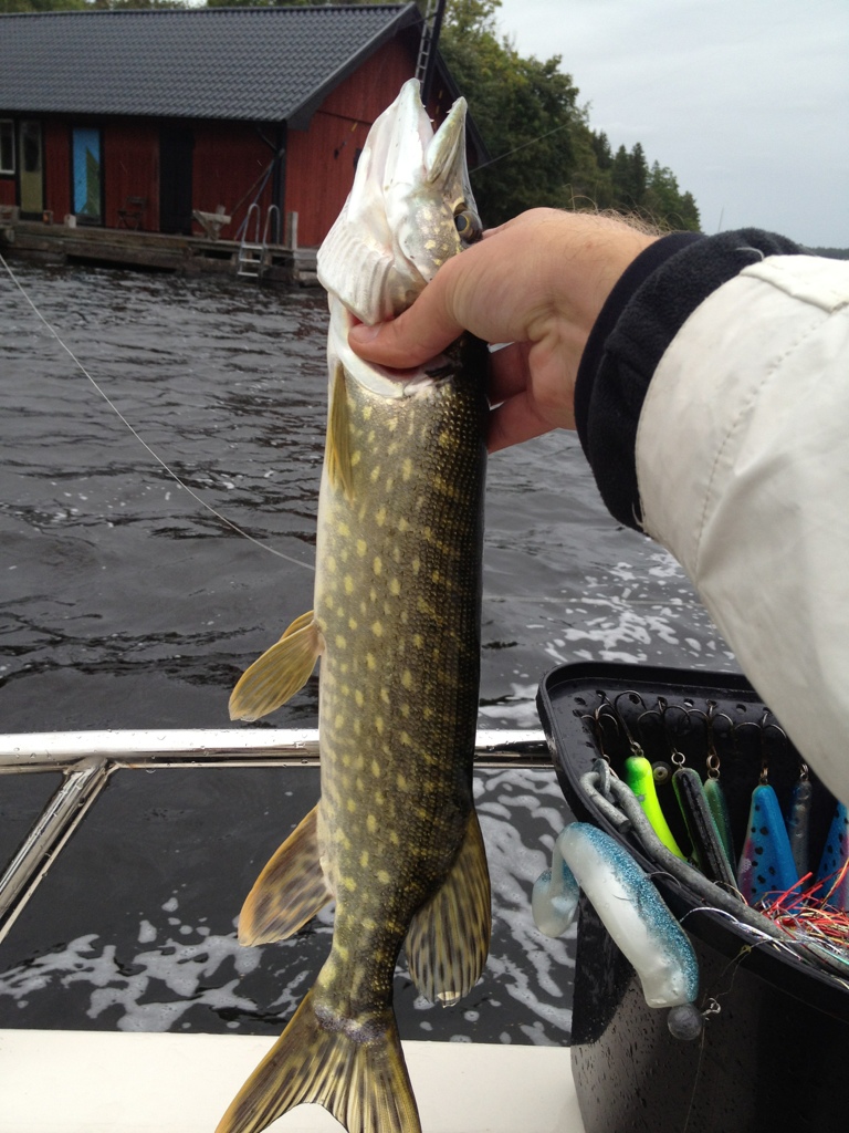 Genomgående var att vi alla tre fiskande tappade en hel drös med gäddor, endel fattiga hugg från gäddorna, endel mindre bra mothugg, och ibland var gäddan bara bättre än oss och kom loss vid båten.