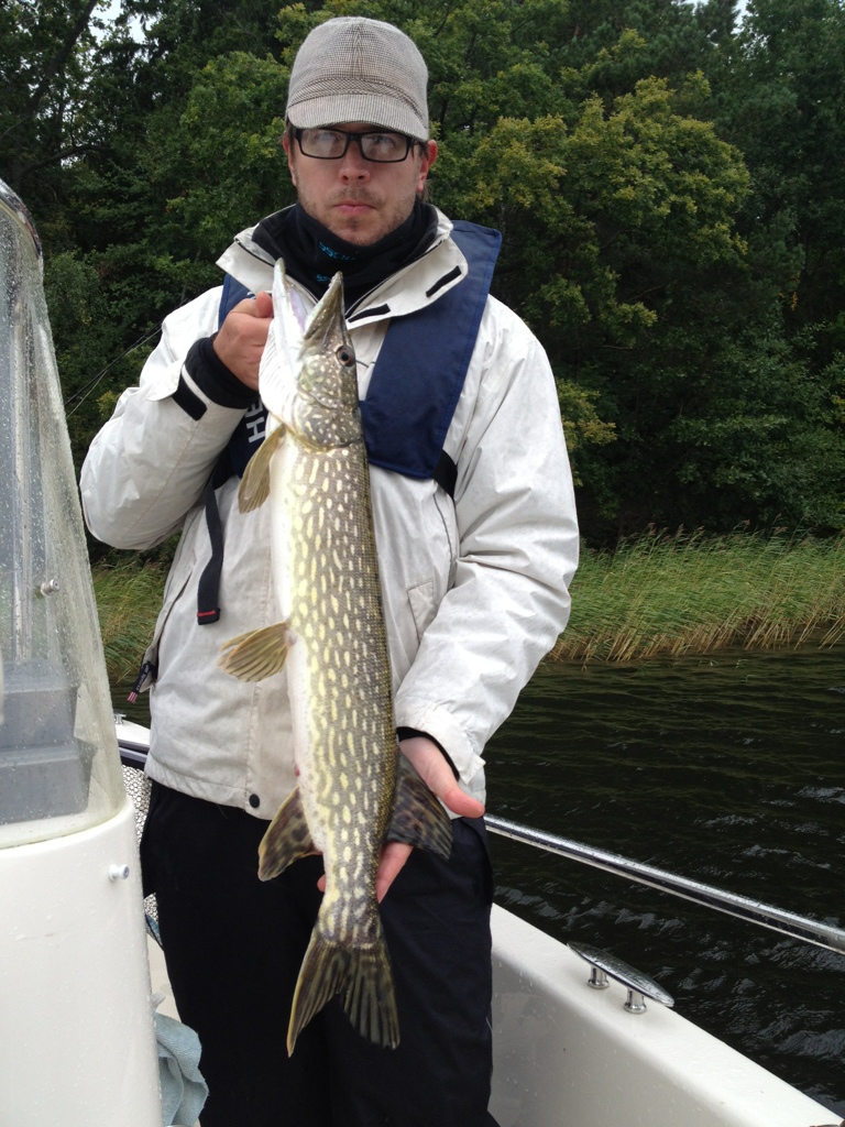 Guiden Christian Maier med en hecht. Denna storlek var typ bland de större vi fick äran att ha i vår båt. Lite trist, men så är verkligheten för fiskare ibland. Trist bara att det var vår verklighet när vi väl var i Rügen. 🙂