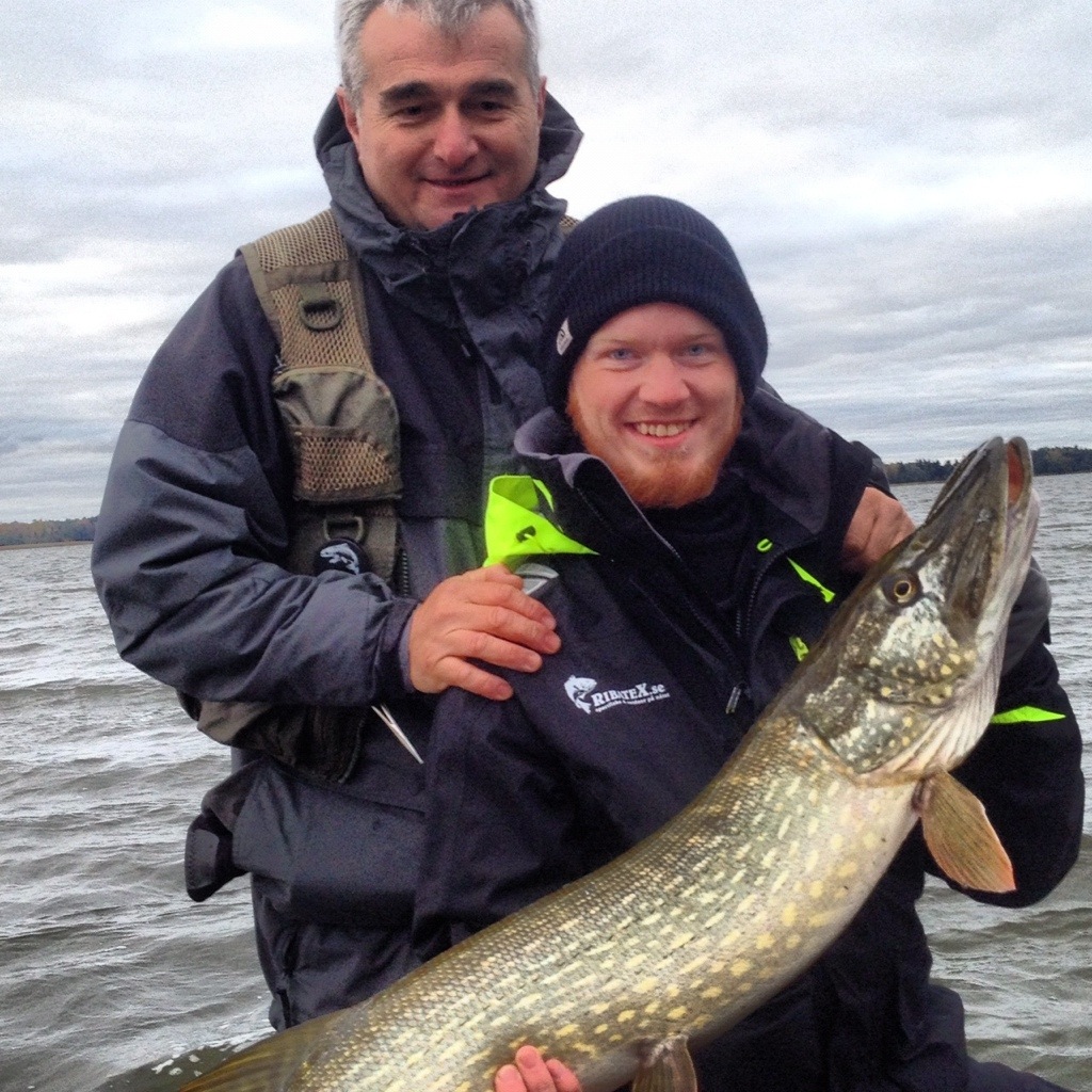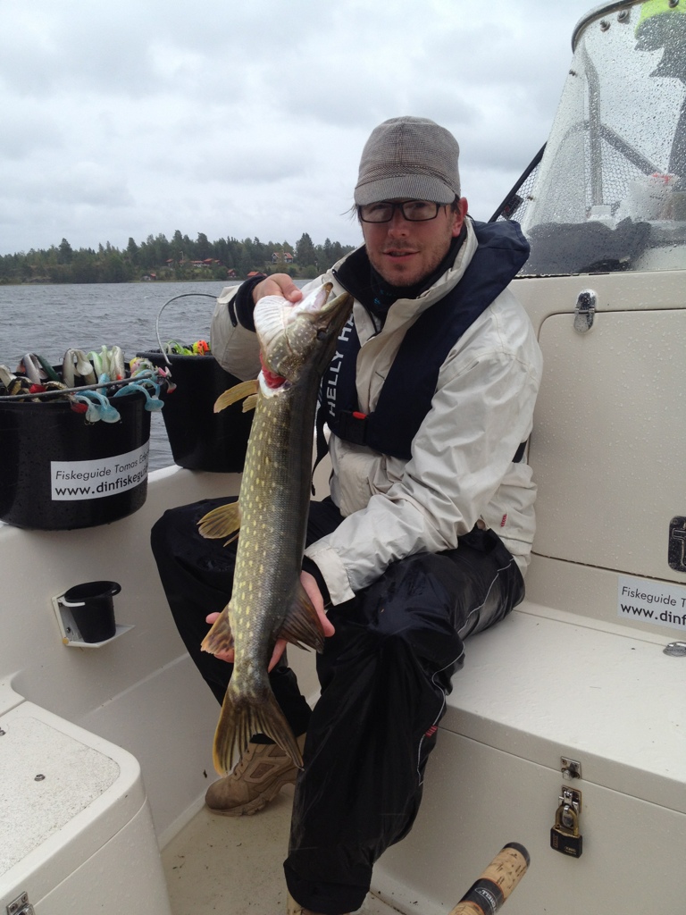 Tomas fick posera med en av mina gäddor. Jag tycker han gör det bra.