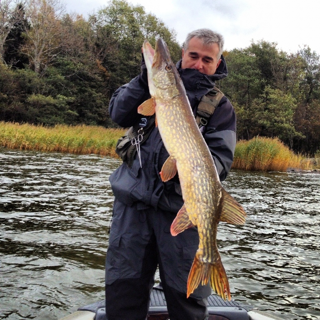 En nöjd Johan med en riktigt fin gädda. Jag tycker mig se att mr Lunkbait ser väldigt lycklig ut! 🙂