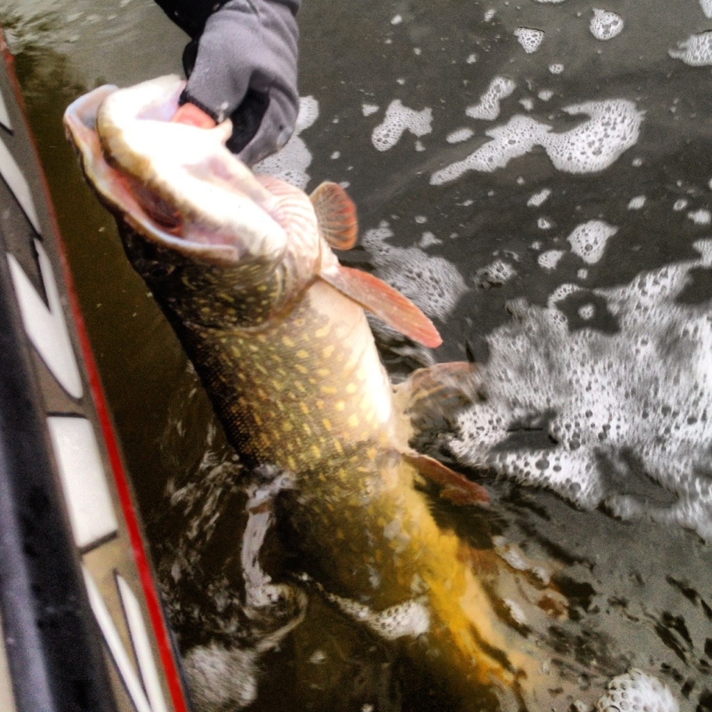 Denna dag drog jag enbart 1 gädda. Hade gärna sett denna gäddbild gånger 3 på längden. 142 cm gädda upp, typ. CM´s PB var 138cm gädda. 🙂