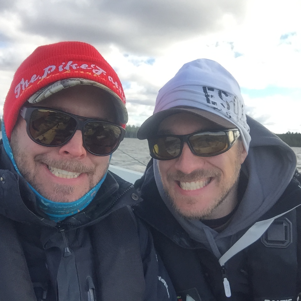 Viktigt med mat när man är på tur. Just denna dag var pölen bakom det enda stället vi fick dagens enda gädda på. Jag drog en liten liten pluttgädda när jag testade en riggning av en BoonShad från Steve.  😀  Ironi.