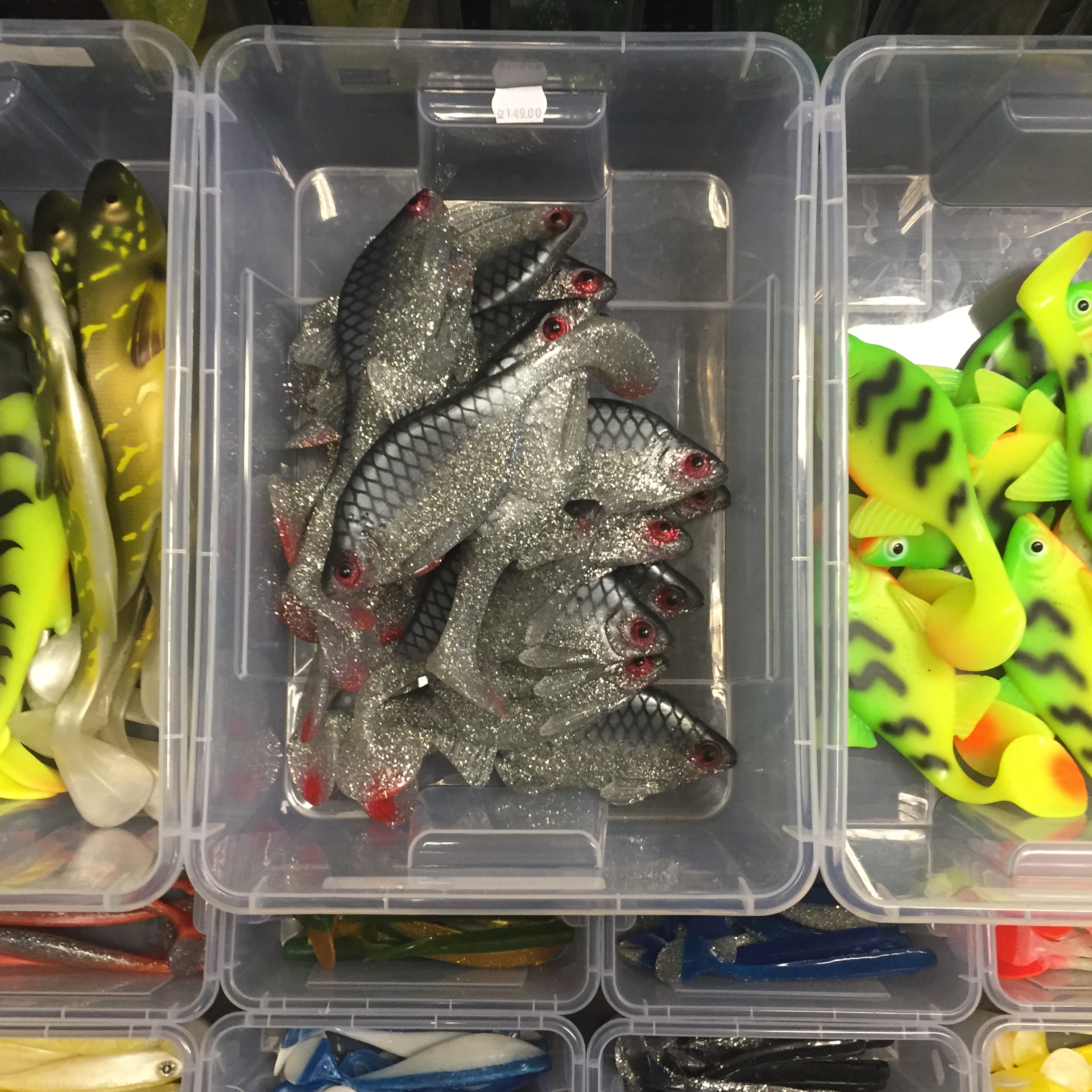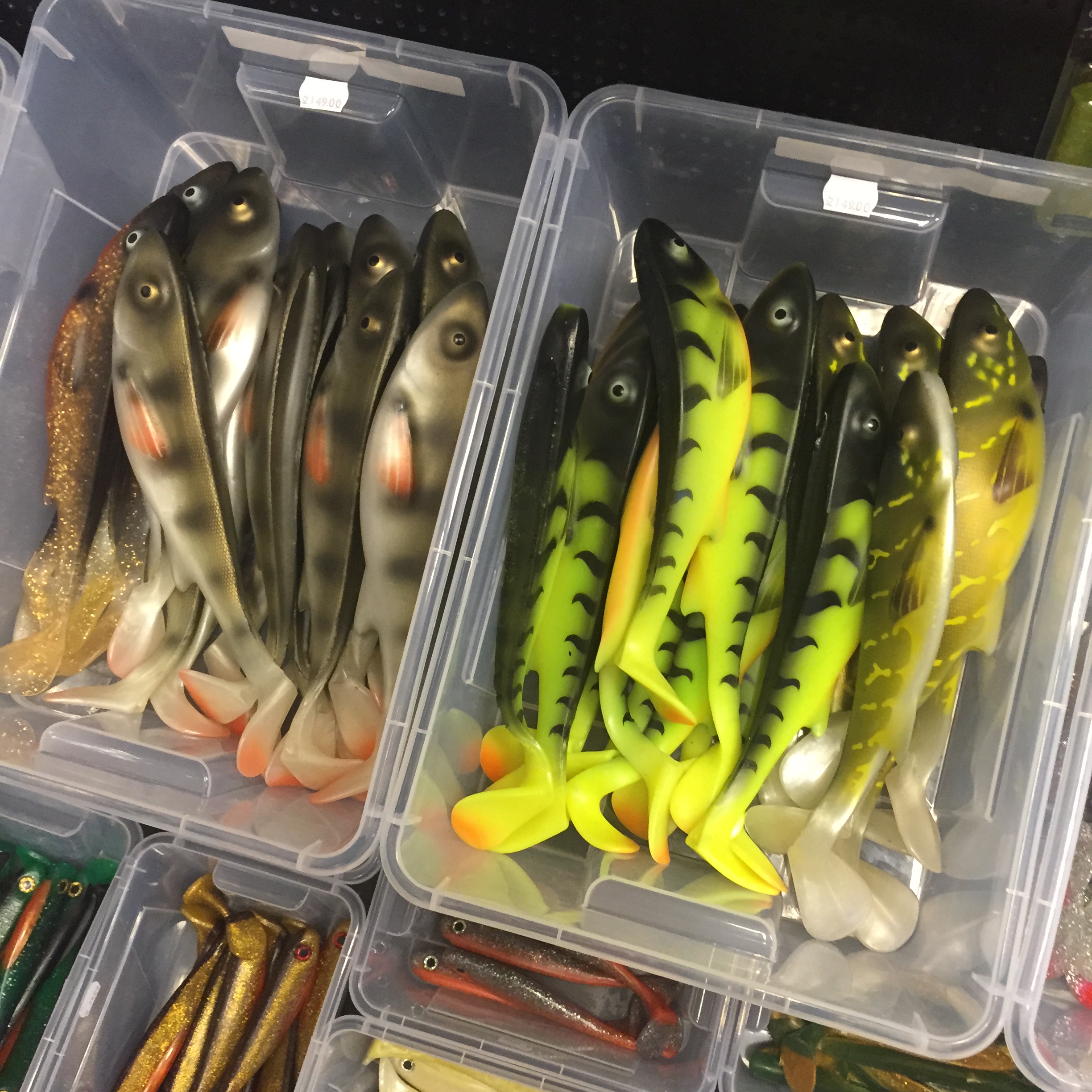 Testade som vanligt en massa olika gummin, av naturlig orsak körde Steve mest med, eller mest, enbart ska jag skriva sina egna beten eftersom han är betesbyggare/gjutare (EsoxGear). Alex och jag körde mycket med hans grejer. Men jag körde även en hel del med andra beten också. Hade med mig 7 stora Planolådor och en hink med beten. (Dock inte med allt i båten)