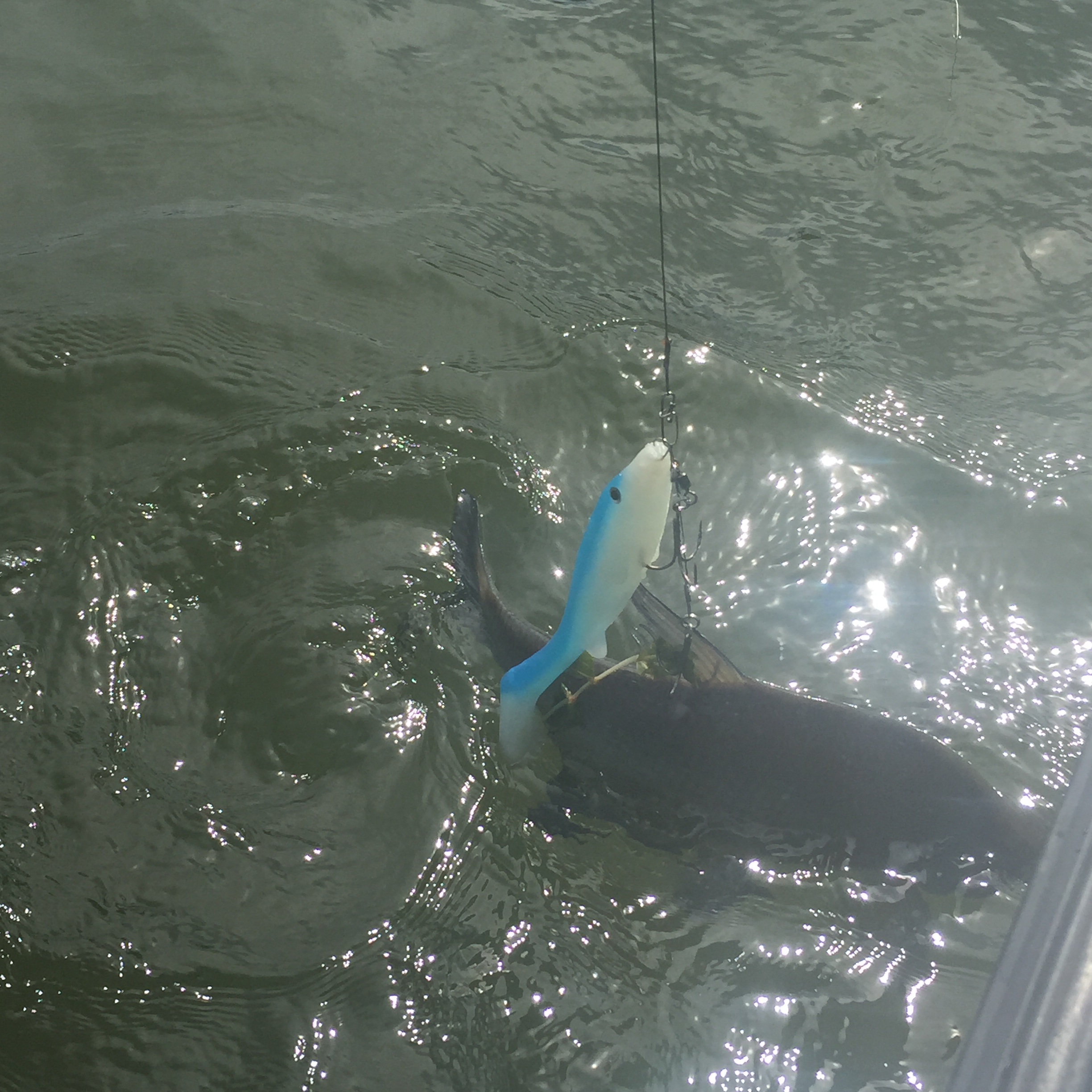 Kris fiskade en 16 centimeters  Westin Shad Teez, 16cm i färgen “Headlight” när en mäktig skugga närmade sig deras båt. En sinnesjukt stor gädda fullkomligt inhalerade och våldsåt Shad Teezen. Smacka!!!  Aaaaahhhh!!!!   Sån sjuk jäkla drömgädda!!