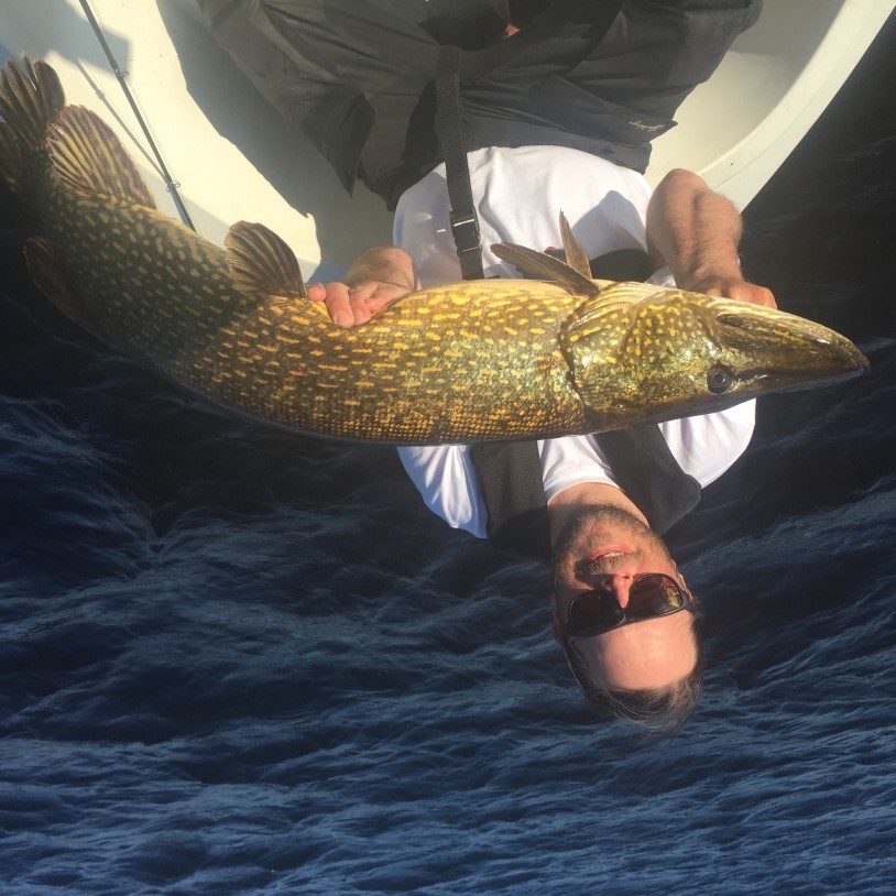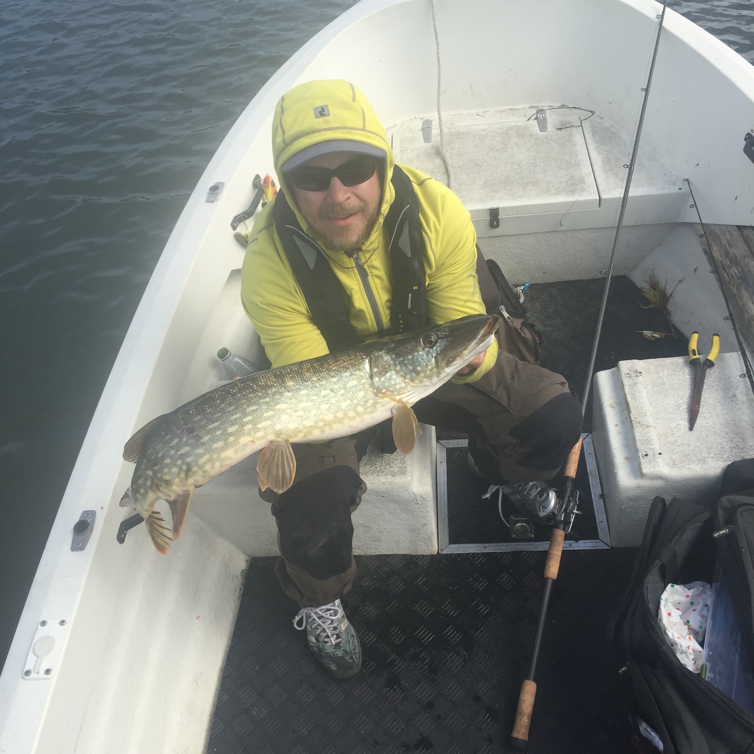 En glad Steve med resans tyngsta gädda. Riktigt proppmätt var hon. Tog på Steves nya bete BoonShad som nu går att köpa på Hedemora Sportfiske.   (Reklam)   😀