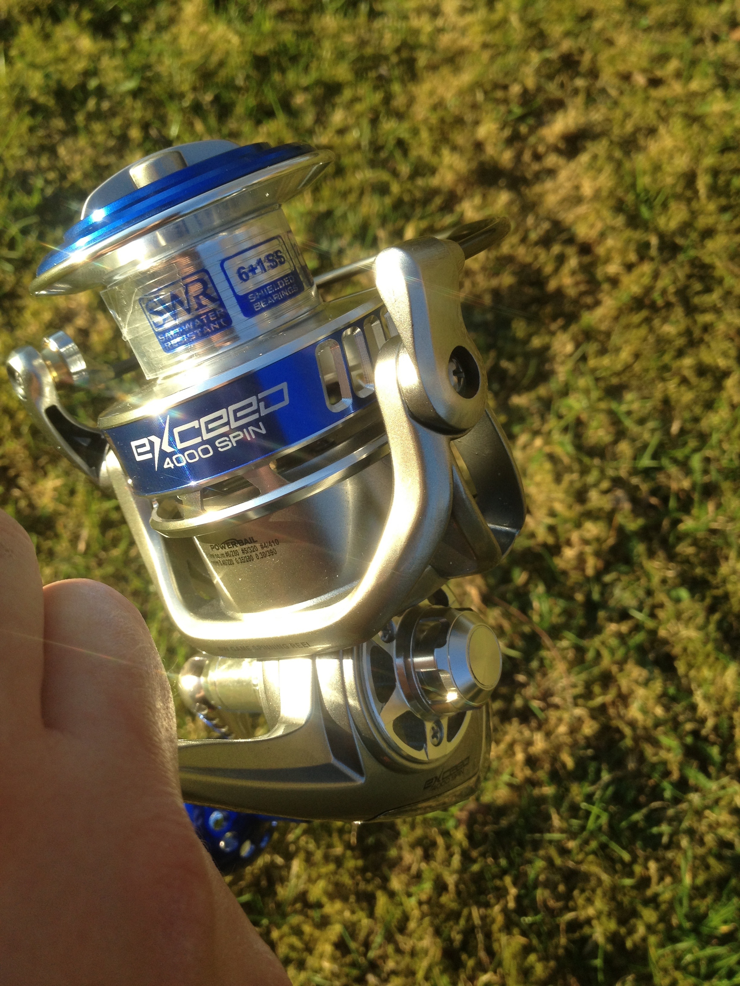 Hade en aning om vad det skulle vara, nämligen den rulle som skulle motsvara och ersätta min Penn Battle. Slog tillslut till med en Trabucco Exceed 4000 Spin. Frågade runt bland bekanta och ingen förutom Robert Jonsson hade ens hört talas om märket. Men jag tänkte att en rulle byggd för saltvattenfiske efter fiskar modell större. Varför inte!? Hehe!