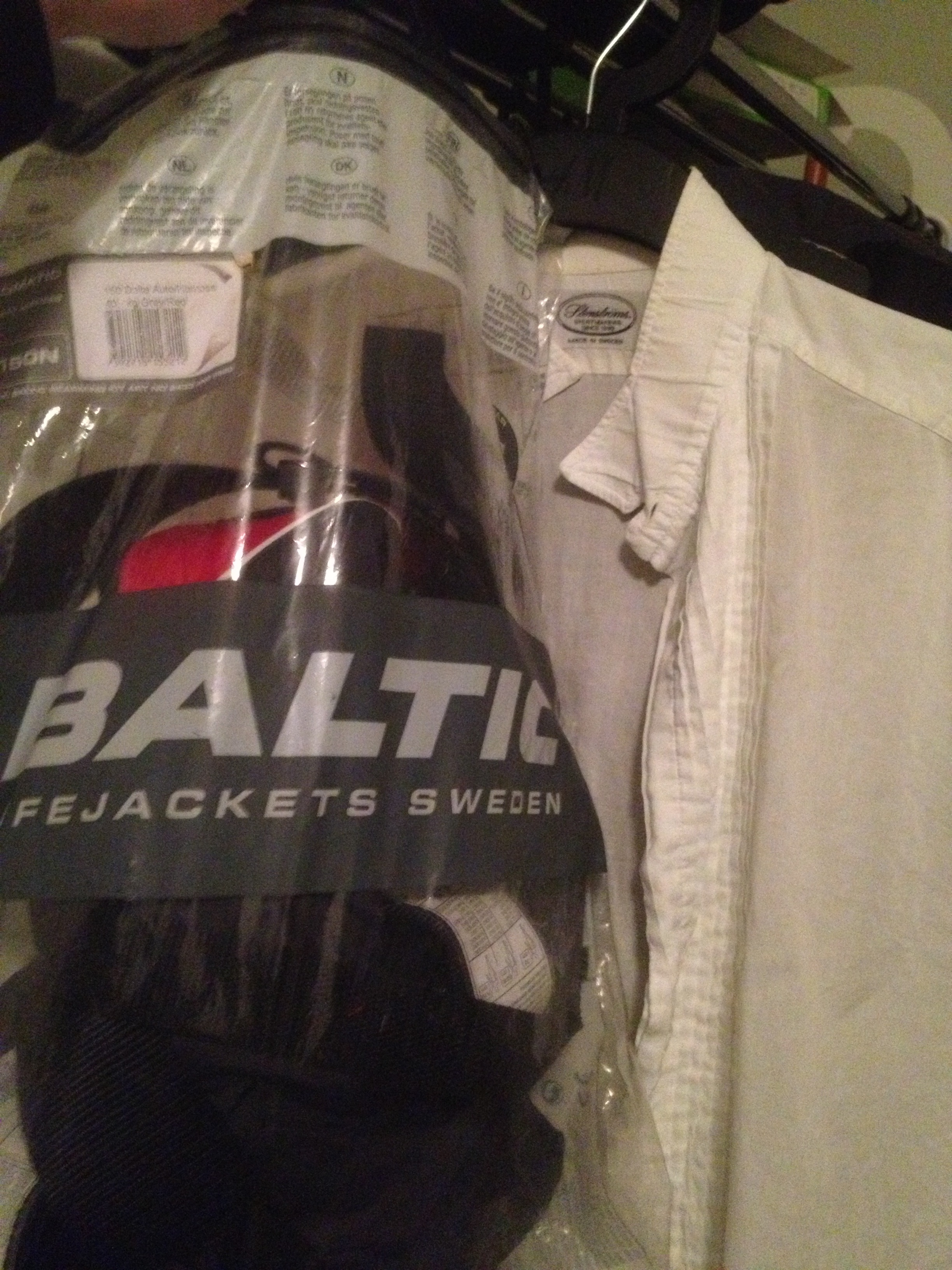 Nu kanske endel tänker… “-Har TPF en smokingskjorta hängande i sin hall?”. Ja, det har jag. Andra kanske tänker “-Råkade den bara hänga där när fotot skulle tas?” Ja, är svaret, men jag satte flytvästen framför därför ljuset var bäst där. 🙂