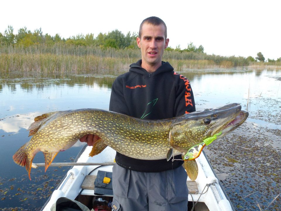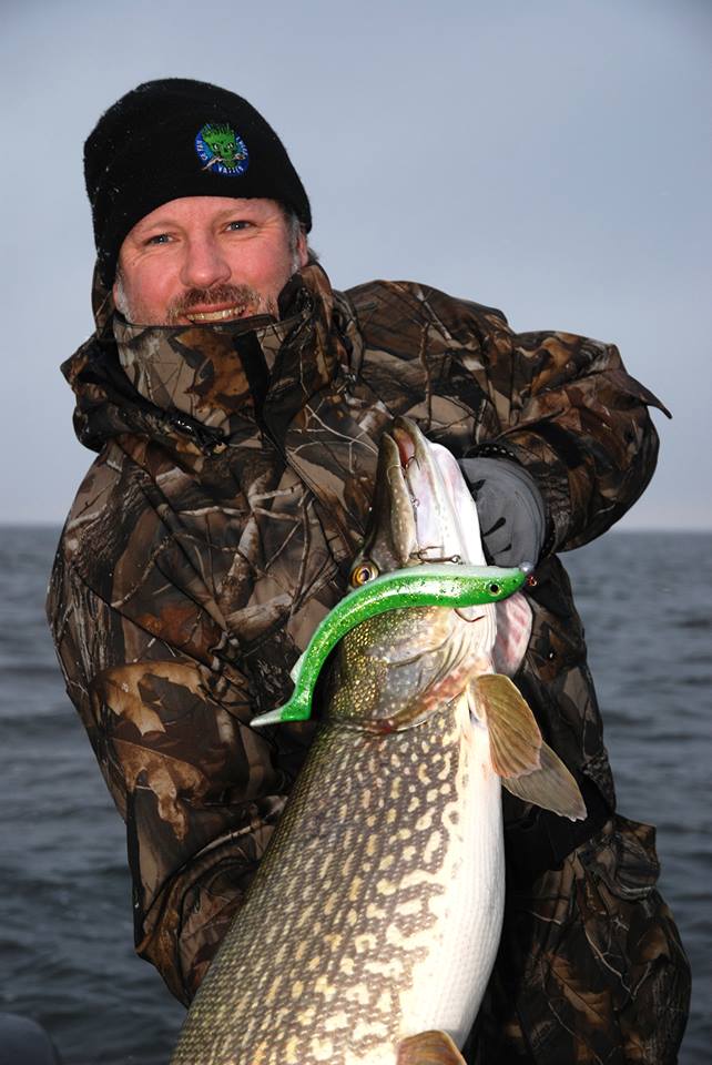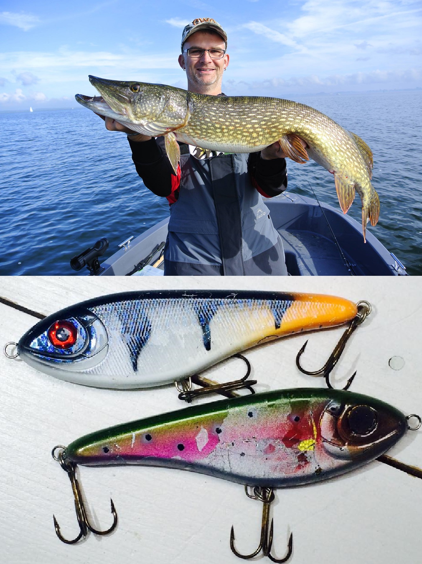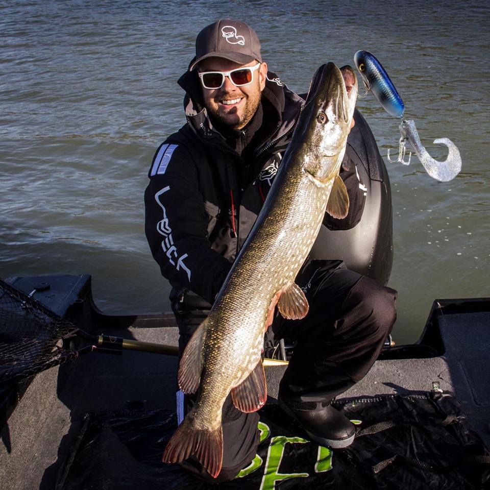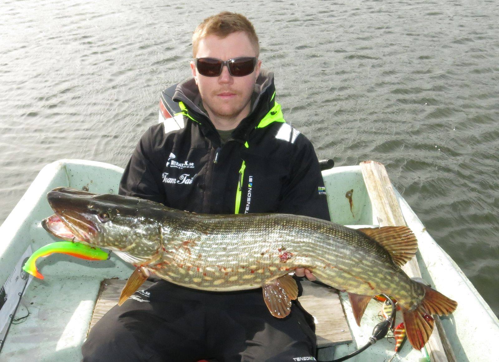 Kanske den ultimata bilden för detta inlägg. (Jag vet många krokar ut innan fotografering), men för fotots skull. Perfekt! Fångsman, gädda och bra bild på fångstbetet! Grymt Dan!