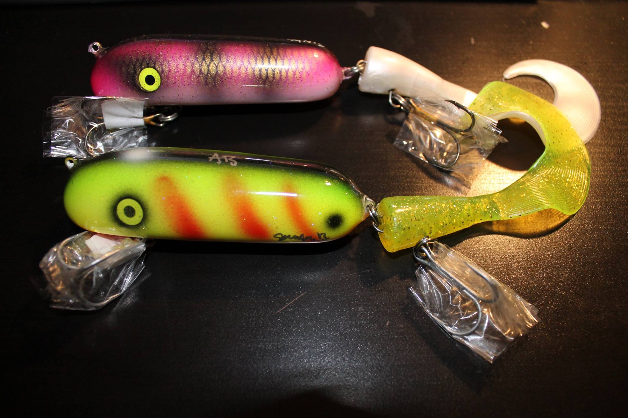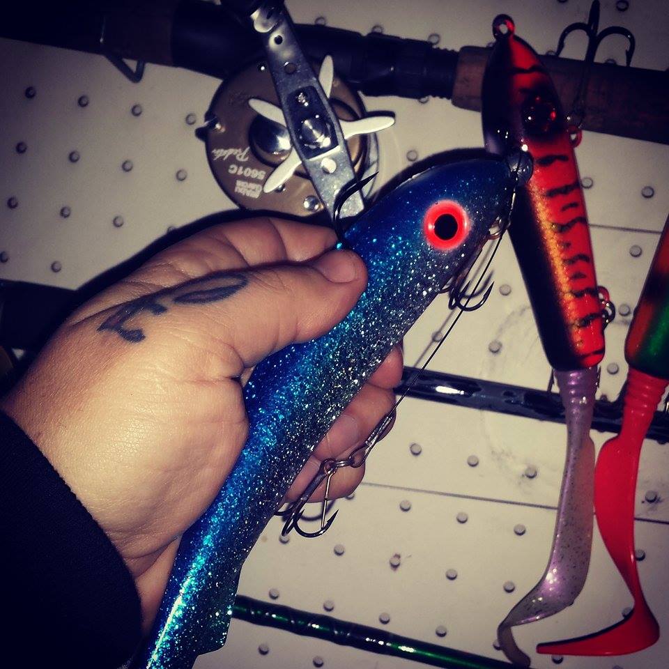 Jag fiskar även med lite gamla prototyper och även beten tillverkade av andra betesbyggare, Wolfcreek, Mange och Claes Svartzonker mm. Och ibland så får mitt första “riktiga” bete följa med, Azrael en storgäddmagnet och det första betet jag gjorde i modern tid och det gick aldrig till butik och blev ingen serie produktion, finns kanske ett 30tal var av jag har 3st själv.