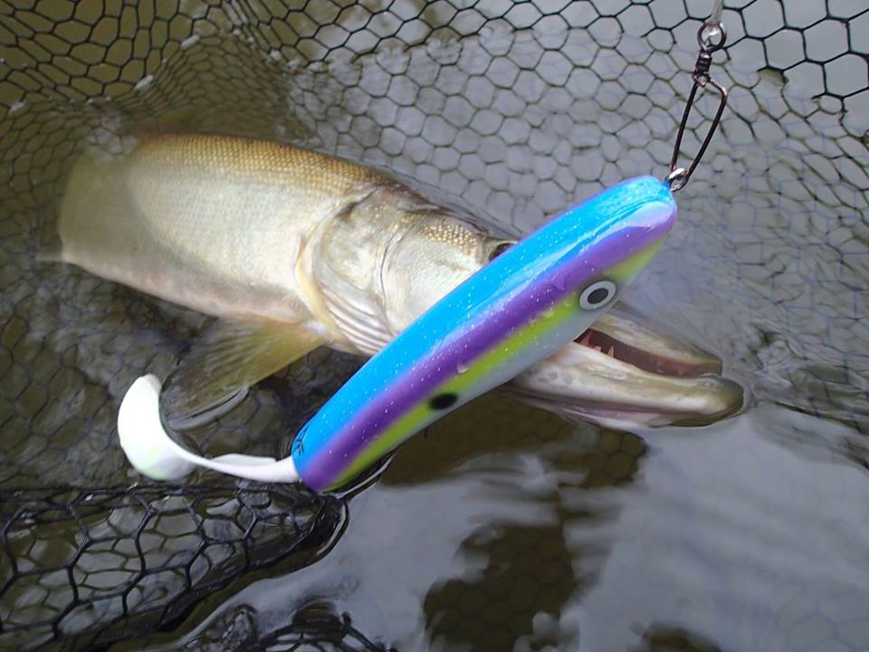 It’s hard to really select one specific ‘favorite lure’ for pike fishing, especially because I am really allround fishing for pike. One day I am fishing small ‘polderwater’ (small channals in Holland) with a light spinrod, and the other day you find me fishing big bodies of water with my boat. Overall there is only 1 specific bait that has worked surprisingly well for me. It is a jerkbait I made myself, specificly built to have a large profile and to dive a little bit deeper then the average jerkbait. I caught several fish above 110 cm on this specific lure, especially on clear water.