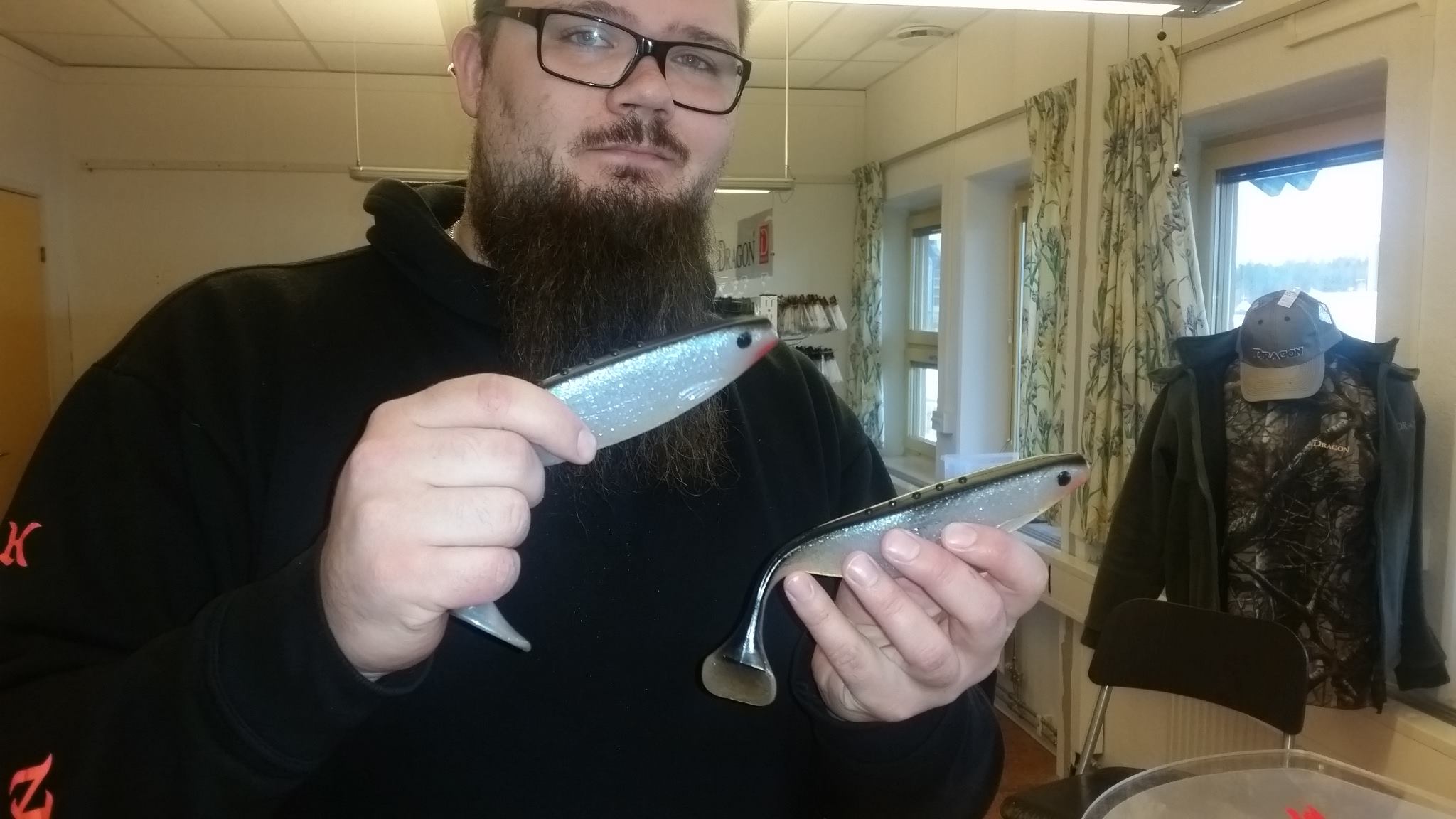 Fintavlan i fiskerummet gillar jag. Kristoffer försöker visa hur gäddan krokas på ett bra sätt med Relaxen!? 😉