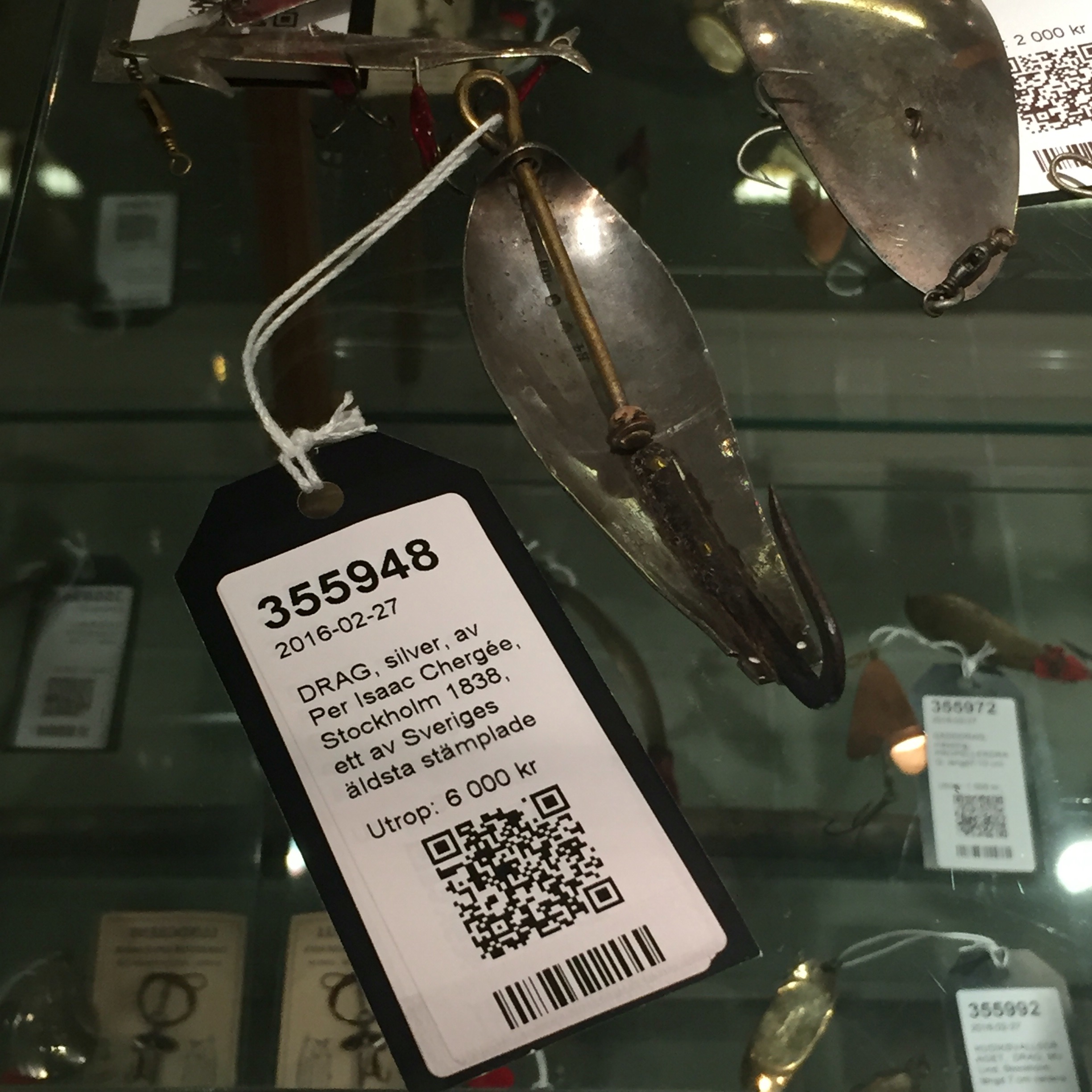 Fick även klämma på ett av Sveriges äldsta stämplade gäddbeten. Tillverkat i Stockholm i silver! Mäktigt! Formen känns aktuell även idag!