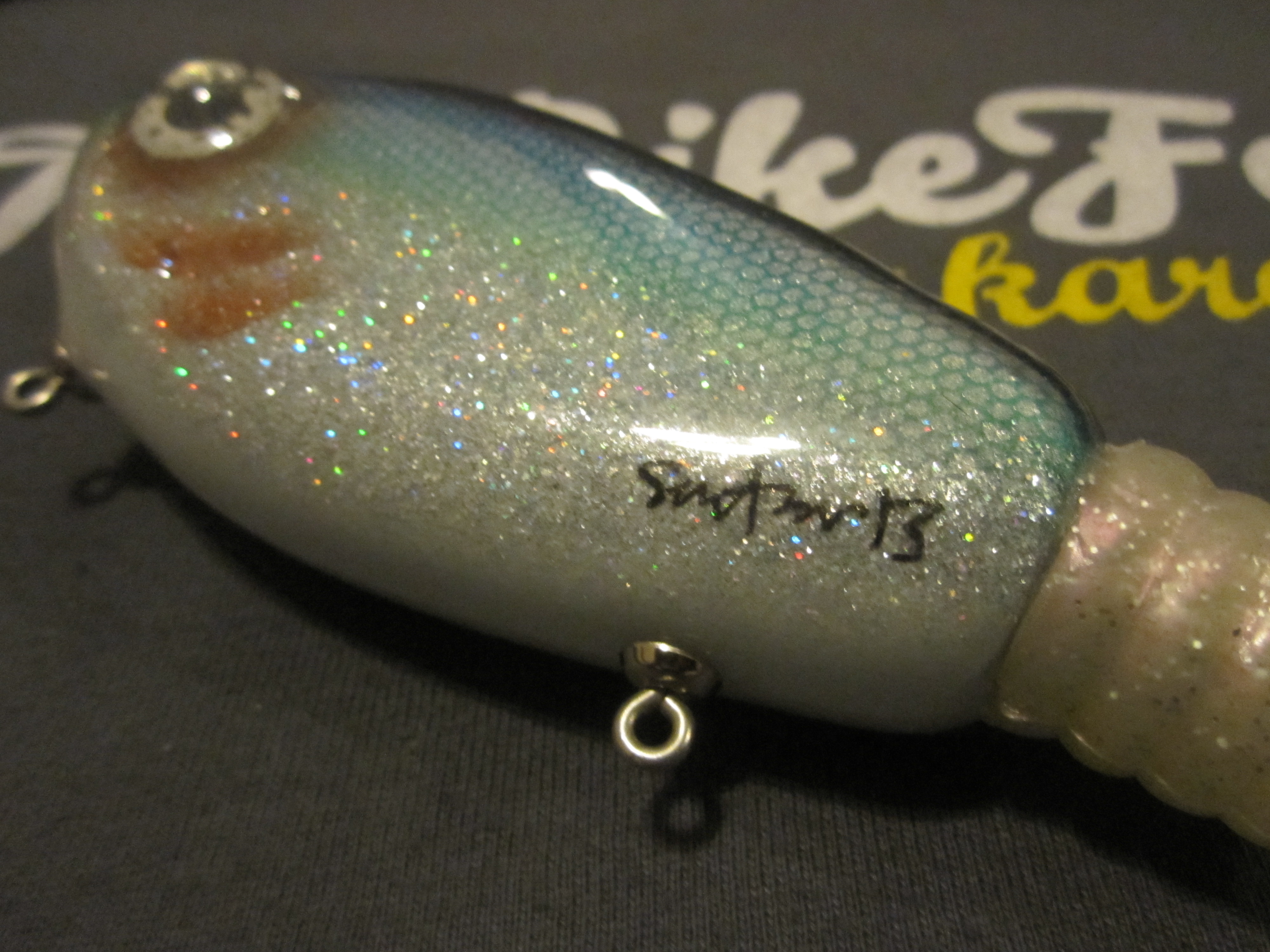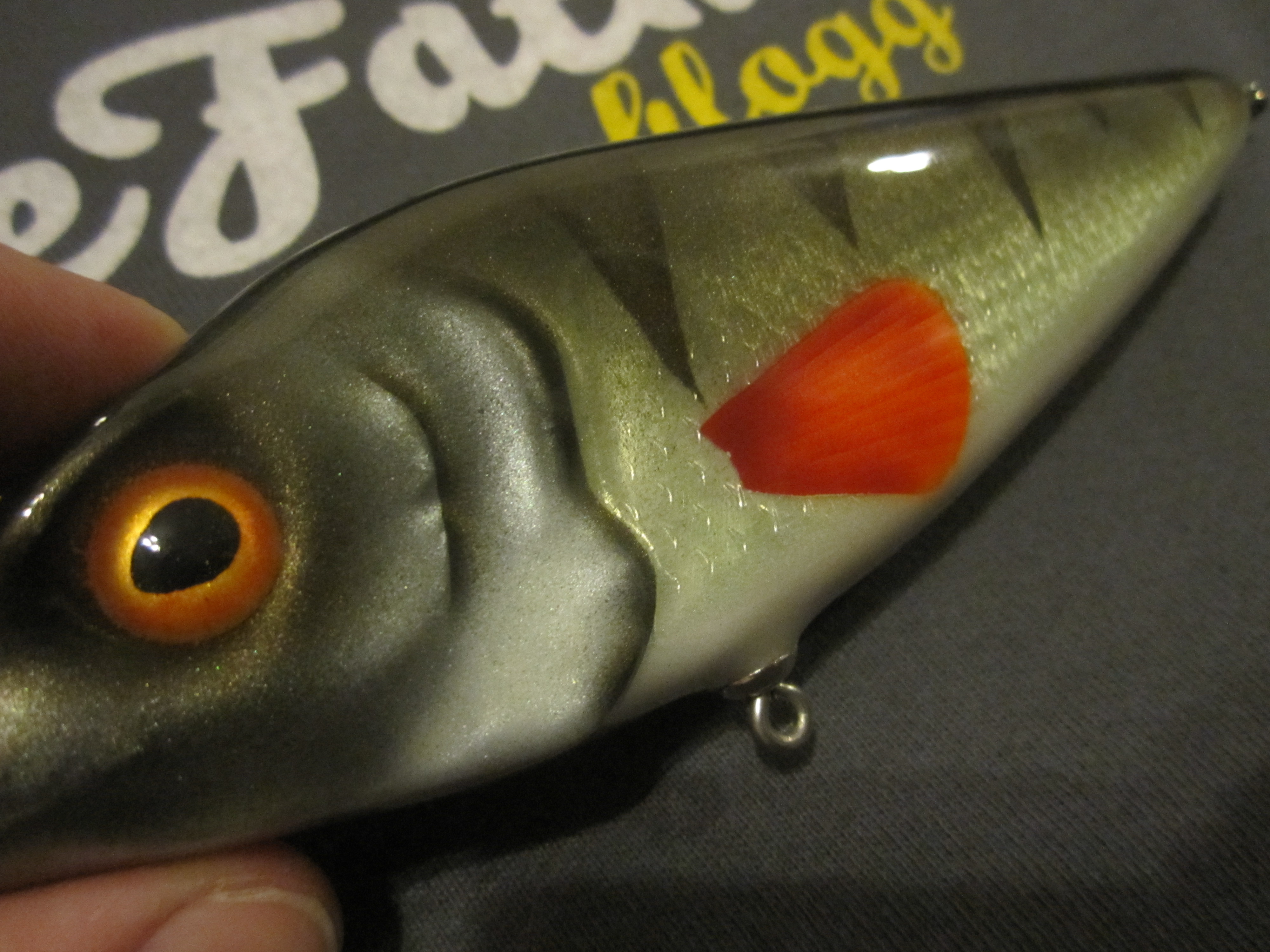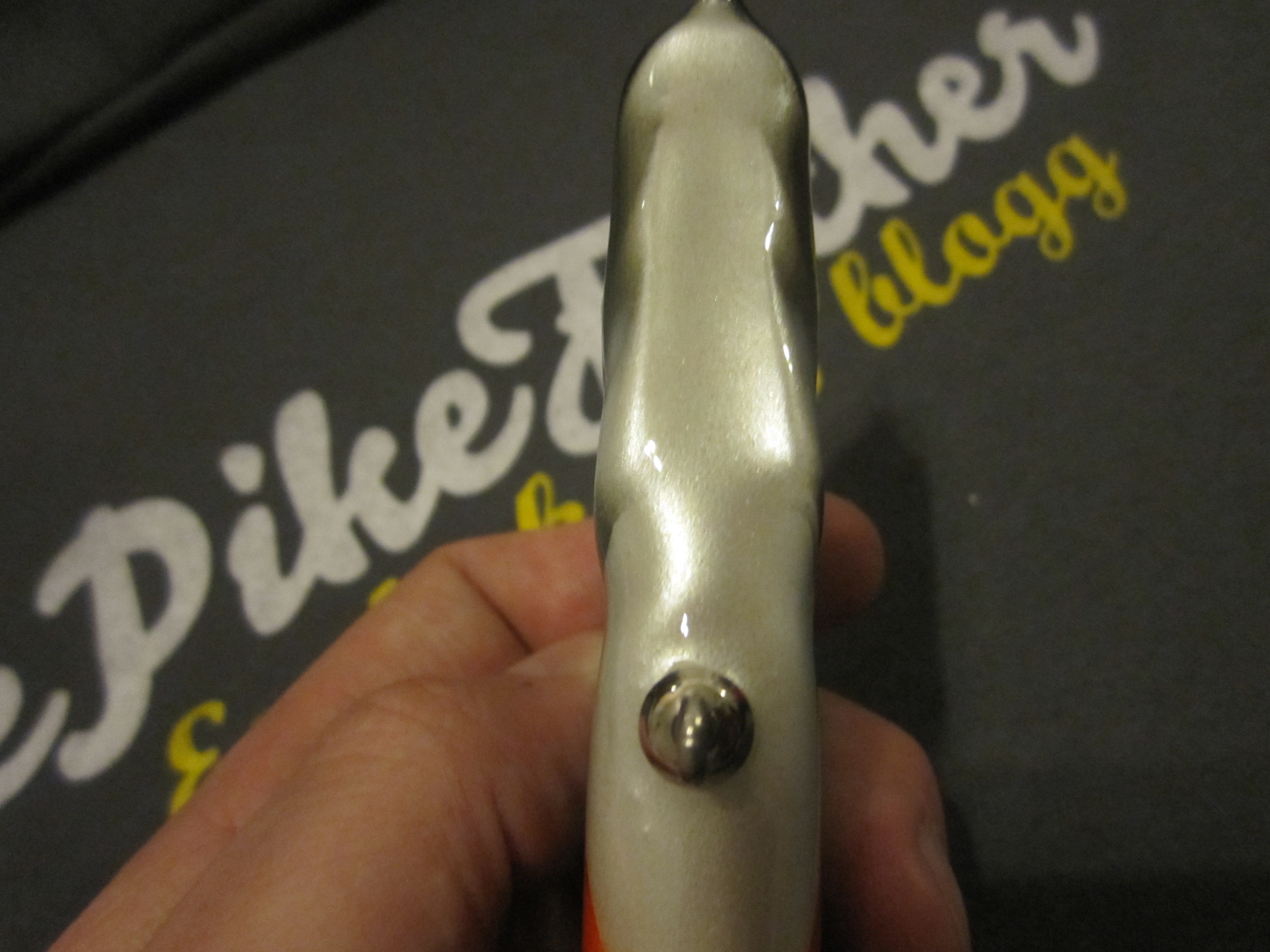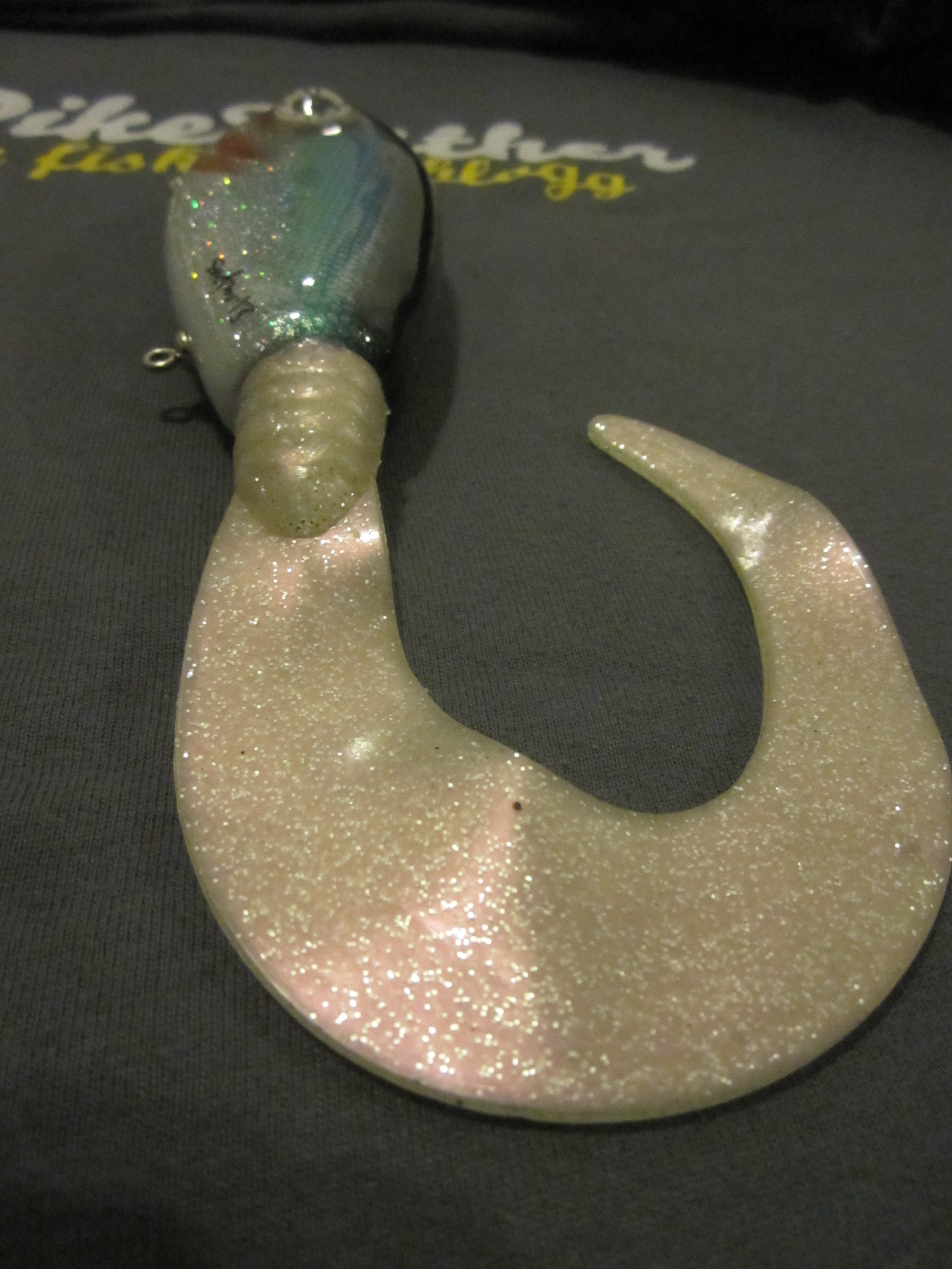 Mitt första jerkbait. Gick väldigt fint i vattnet, såg ut som skräp. Jag fick en gädda, sen pensionerade jag betet. 😀