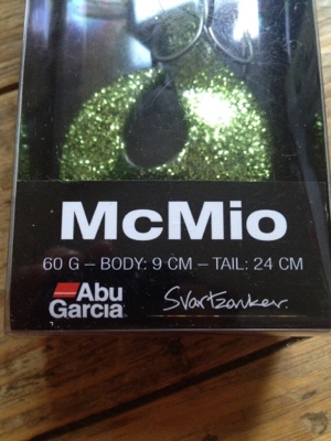 McMio är ett tailbete med lite lättare vikt , denna godbit väger 60gram. Jag satsade på en färg som funkar fint i min sjö och då är papegoj något som gått hett på sistone. (min hemmasjö har väldigt brunt vatten, och gula färger har gått bäst nu på vår/försommar/sommar).