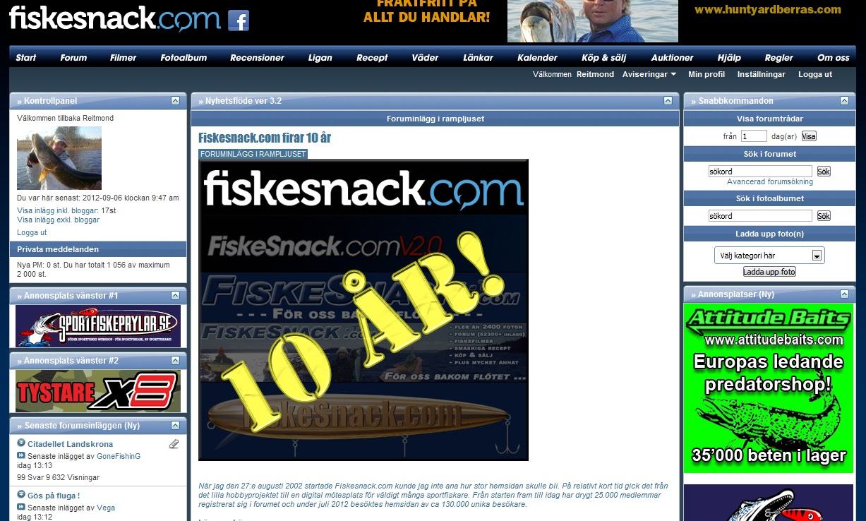 Grym sida som blivit ett år äldre. 27/8-12 fyllde Fiskesnack.com 10år. Hipp hipp hurra hurra hurra hurra!!