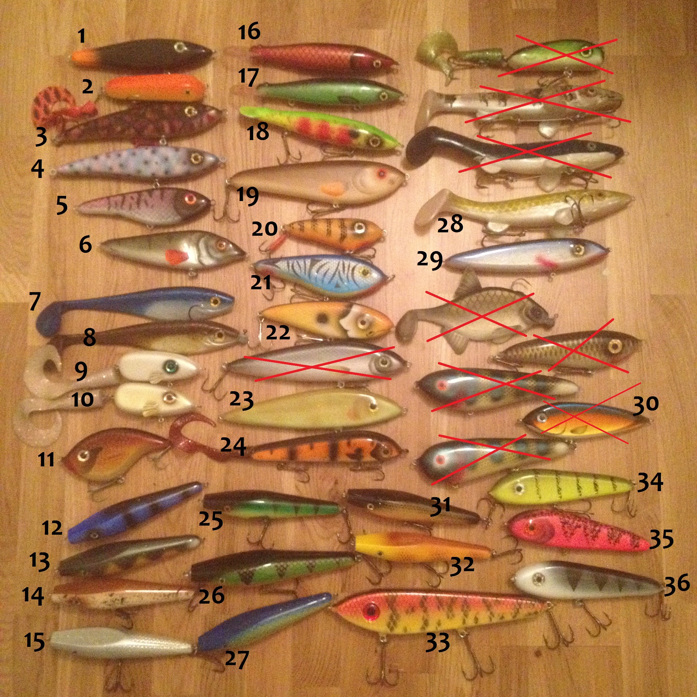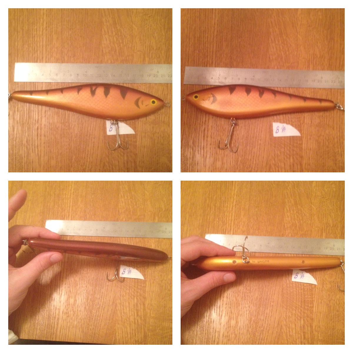 7. Hoosier Rattling Baitfish. Ett bete tillverkat av amerikanen Don Slagle. Bred sida till sidagång. Ett riktigt, riktigt fett bete! 25cm, 200gr. 150:-