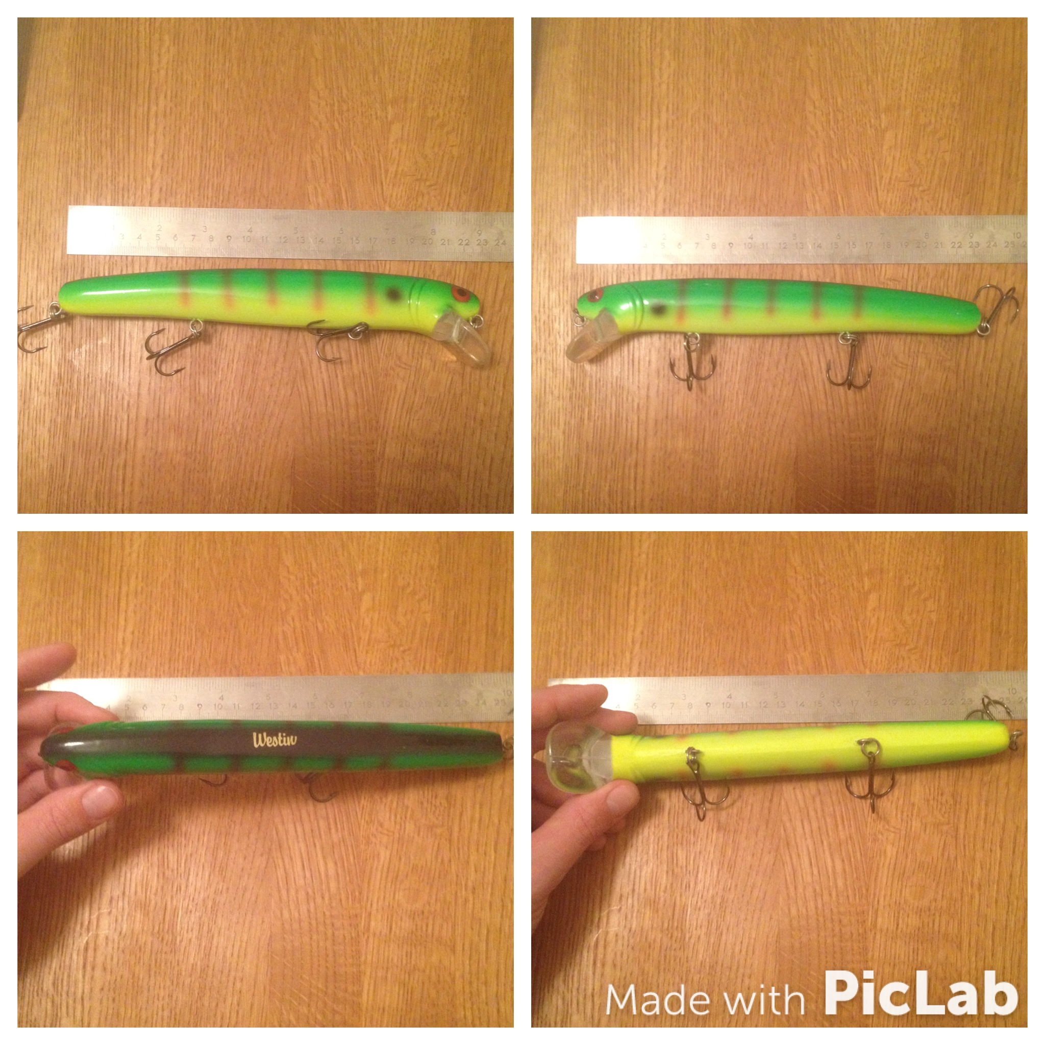 21. Creek Chub, En monsterwobbler som går sjukt bra i vattnet! Flytande. 33cm, 127gram. Små lackskador vid böj, se bilder. Skickas ej! Enbart överlämning i Bromma eller Sthlm. 80:-