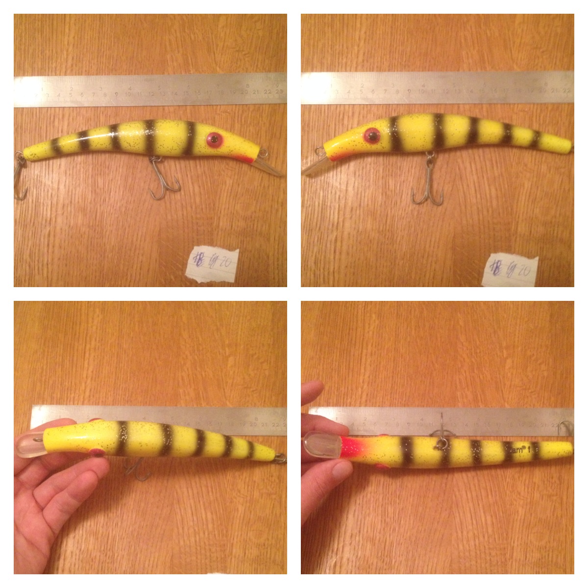 10. Från svenska Jonatan Backlund aka Backlure kommer detta tailbete som heter BackTail. Betet är tillverkat i bok och lackat med sex lager C&W-epoxylack. Ett riktigt hett bete i en killerfärg!! Gula ögon, och en aningens gulvit färg. Nikotinvit typ.  🙂  21-22cm, 73gr.  175:-