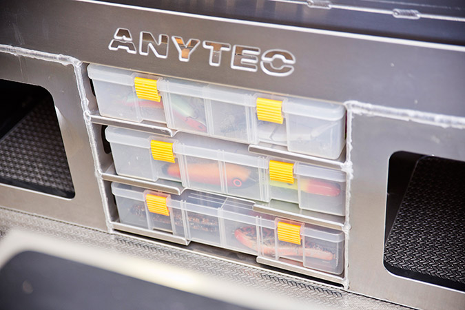 Marko i sitt fiskeförråd. Här har han alla sina fiskeprylar.