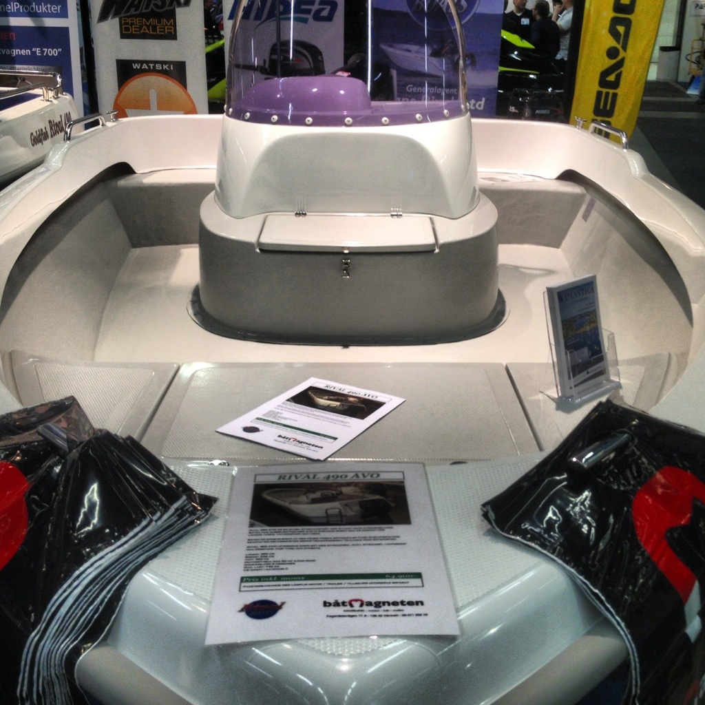 Markoolio svarar: ”-Nej, jag hade en sån, idag har jag däremot en 530Spf från Anytec. Jag är verkligen skitglad över den. Den passar mig verkligen eftersom den är stryktålig, den har legat i vattnet hela vintern, haha! Sen kan jag ta mig fort mellan platser.”. Jag frågar vad den toppar? ”-40 knop, lätt! I alla fall om jag är själv. Osså är den bra i sjö.”.
