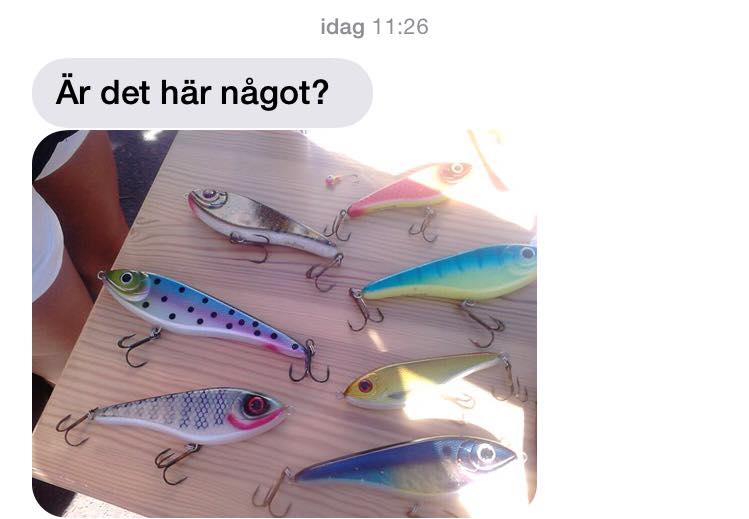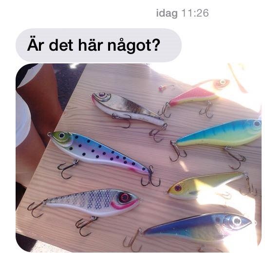Sen pratar jag vidare med mamma i min telefon, men mamman svarar inte. Man hör hon istället pratar med säljaren på den bakluckeloppis i Dalarna som hon befinnan sig på. “-Jomen, det blev grönt ljus. Jag tar alla de här gäddbetena”.